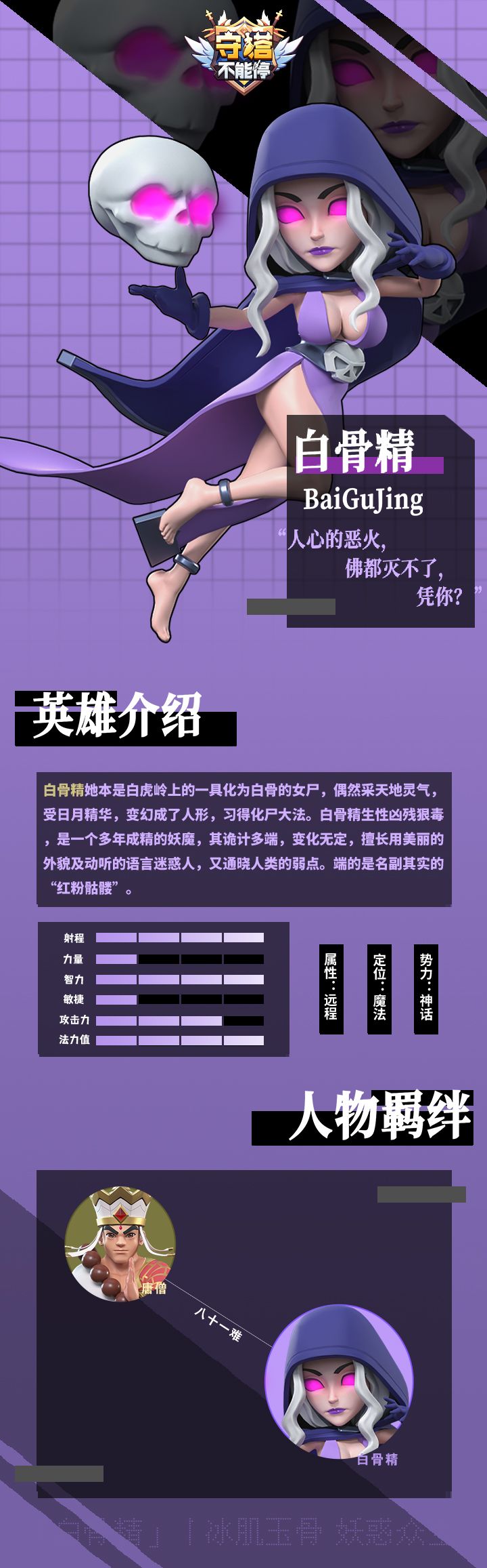 亲爱的小伙伴们: 今天带来英雄「白骨精」详情介绍: 技能展示: 释放死亡的能量对大范围敌人造成多段伤害。