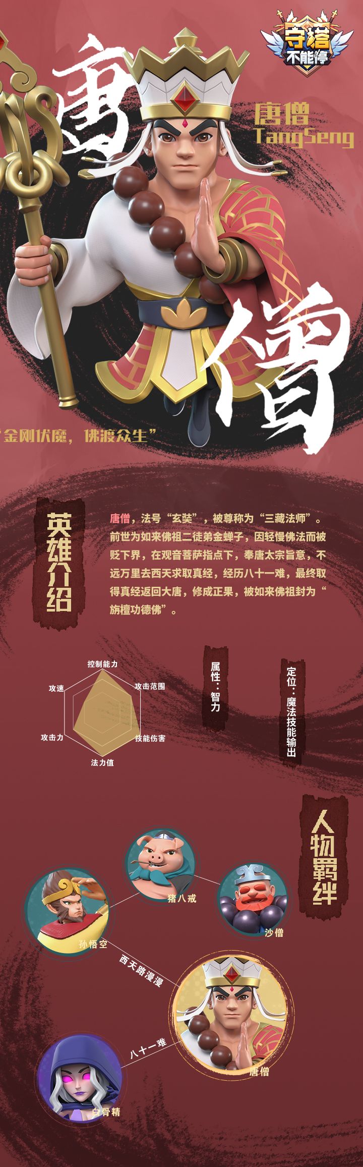 亲爱的小伙伴们: 今天带来英雄「唐僧」详情介绍: 技能展示: 释放琉璃金刚珠对区域敌人造成范围多段伤害!