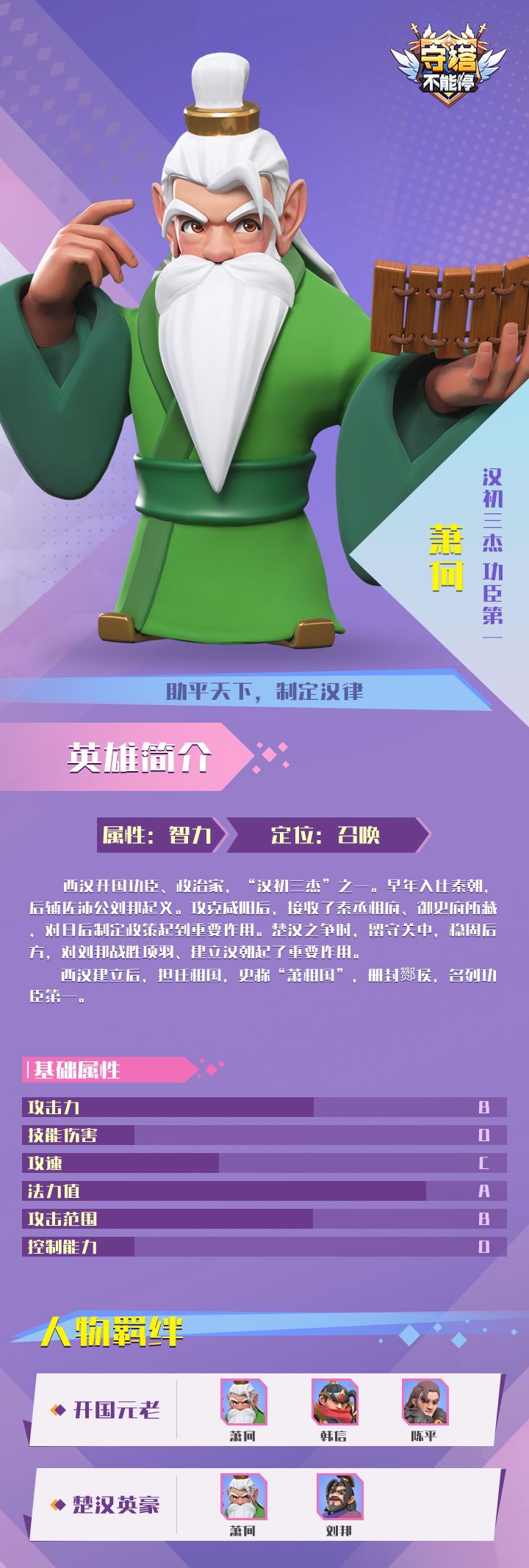 亲爱的小伙伴们: 今天带来英雄「萧何」详情介绍: 技能展示: 召唤一队远程弓手进行攻击,召唤数量随英雄星级提升而增加。