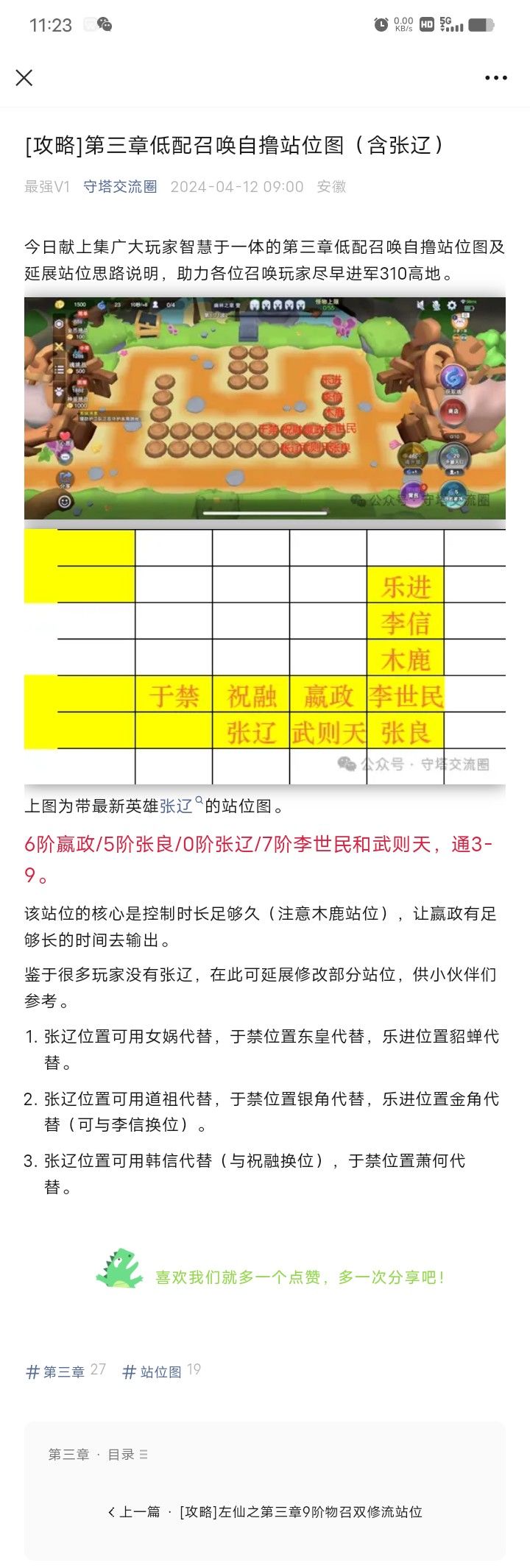 第三章低配召唤自撸站位图(含张辽)