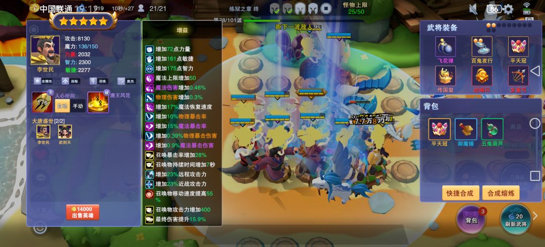 朋友拉入坑,从1-5开始单通玩家。 不肝不氪全靠白嫖。 冲击之前建议去兑换特权卡和资源卡 本人单通时终伤13.5 局外一切提升,包括装备符文等都是召唤属性词条。 李世民:驱魔斧+暴击斧+平天冠+任何提升召唤的装备 【李世明专属优先排第一,只要遇见了必买】 武则天:减CD和捆仙书和寒冰符,不吃加智力装。 【武则天专属有多余的钱就买,召唤留人全靠武则天】 韩信:金蛇剑+飞燕珠+驱魔斧+任何提升召唤的装