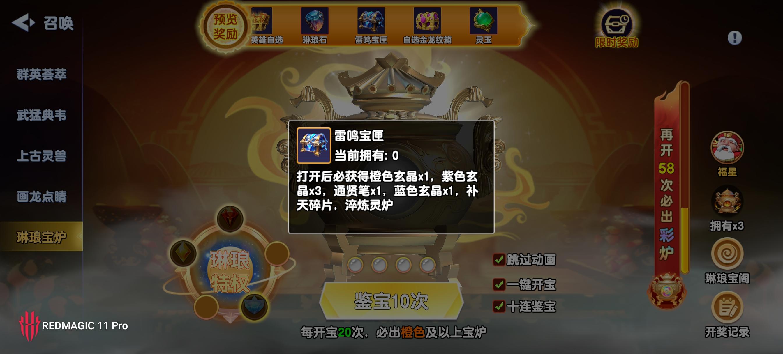 这个有bug。 全是特级金玄金箱子。从来没有雷鸣宝箱r然后小号开的全是雷鸣。没有一个特级玄金箱子,官方来解释下