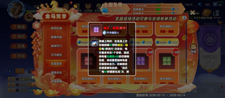 春节快乐,亲爱的召唤师大人们! 在这个欢乐祥和的日子里,愿你们的心情如同春节一样温馨、喜庆! 让我们一起迎接新的一年,充满希望和喜悦。 为了感谢您的支持与陪伴,我们为您准备了福利兑换码! 春节福利兑换码为:0ROGS2NO 有效期:2026年02月15日0点——2026年2月23日23:59 获得礼包码后,进入游戏后,点击右下角更多,点击设置,选择功能/隐私,点击兑换礼包,输入兑换码即