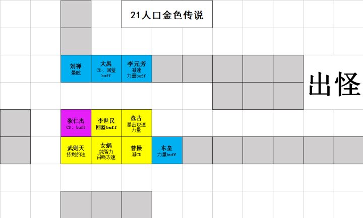 一、阵容(21人口)金卡:赵云、关羽、吕布紫卡:张飞、刘邦、董卓蓝卡:貂蝉、黄忠、刘备、马超、刘婵、大禹站位装备一图流(末尾)二、英雄技能说明:关羽 技能:4段攻击前三次力量*15+5000第四次力量*45+12000 冷却18秒五星:技能对精英怪增加325%伤害羁绊1:提升力量属性70%羁绊2:技能伤害+20%赵云 技能:提升80%攻速攻击力80 持续10秒冷却17秒五