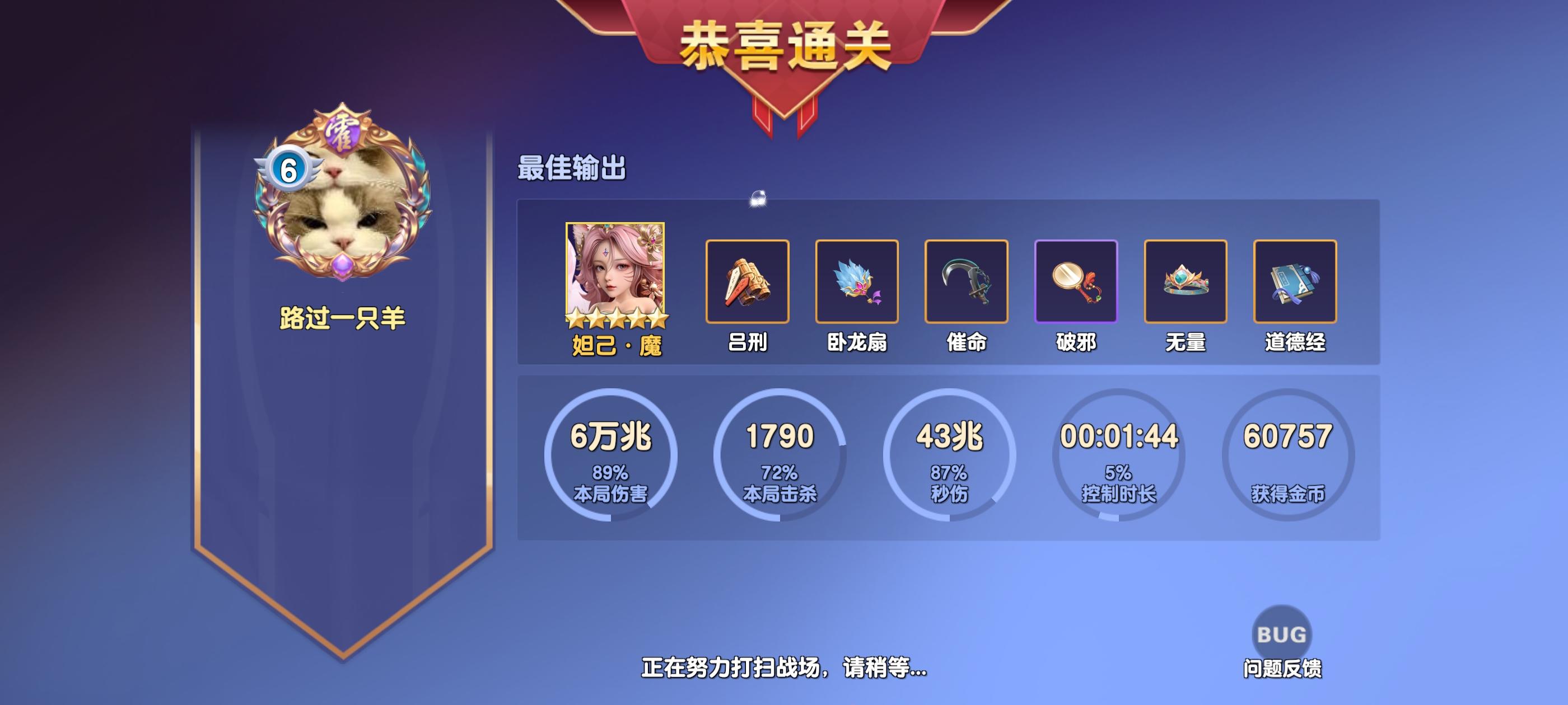15环。9妲己(2觉完)12云霄白板。9蔡文姬白板,12太乙和9甄姬白板。老头996。boss剩余20秒过的。