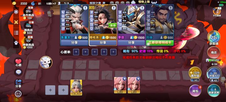 朋友拉入坑,从1-5开始单通玩家。不肝不氪全靠白嫖。冲击之前建议去兑换特权卡和资源卡本人单通时终伤13.5局外一切提升,包括装备符文等都是召唤属性词条。李世民:驱魔斧+暴击斧+平天冠+任何提升召唤的装备【李世明专属优先排第一,只要遇见了必买】武则天:减CD和捆仙书和寒冰符,不吃加智力装。【武则天专属有多余的钱就买,召唤留人全靠武则天】韩信:金蛇剑+飞燕珠+驱魔斧+任何提升召唤的装