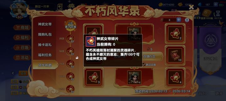 好像还是碎片合成的,白嫖党大部队等后期看看能不能白嫖吧(欧皇除外)