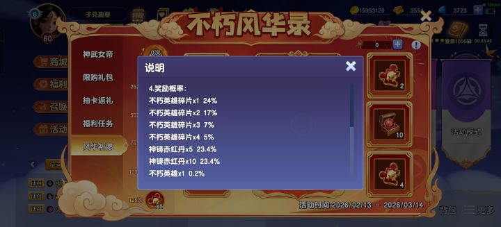 梭哈曹操羁绊天神赐福不知道哪个模式会出现,求告知,感谢!张郃开自选到12。杨玉环直接开自选到14用以前的飞升石直接飞升,12张辽转蔡文姬,