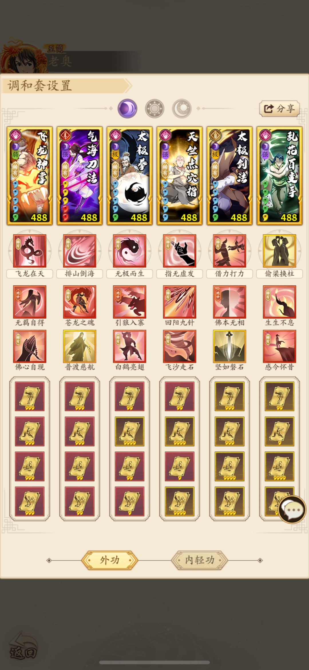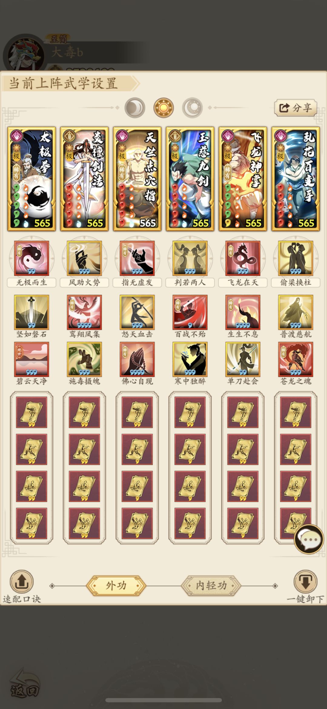 自创阳毒套路,600-800不用换,最多换下武学位置。丝滑通关