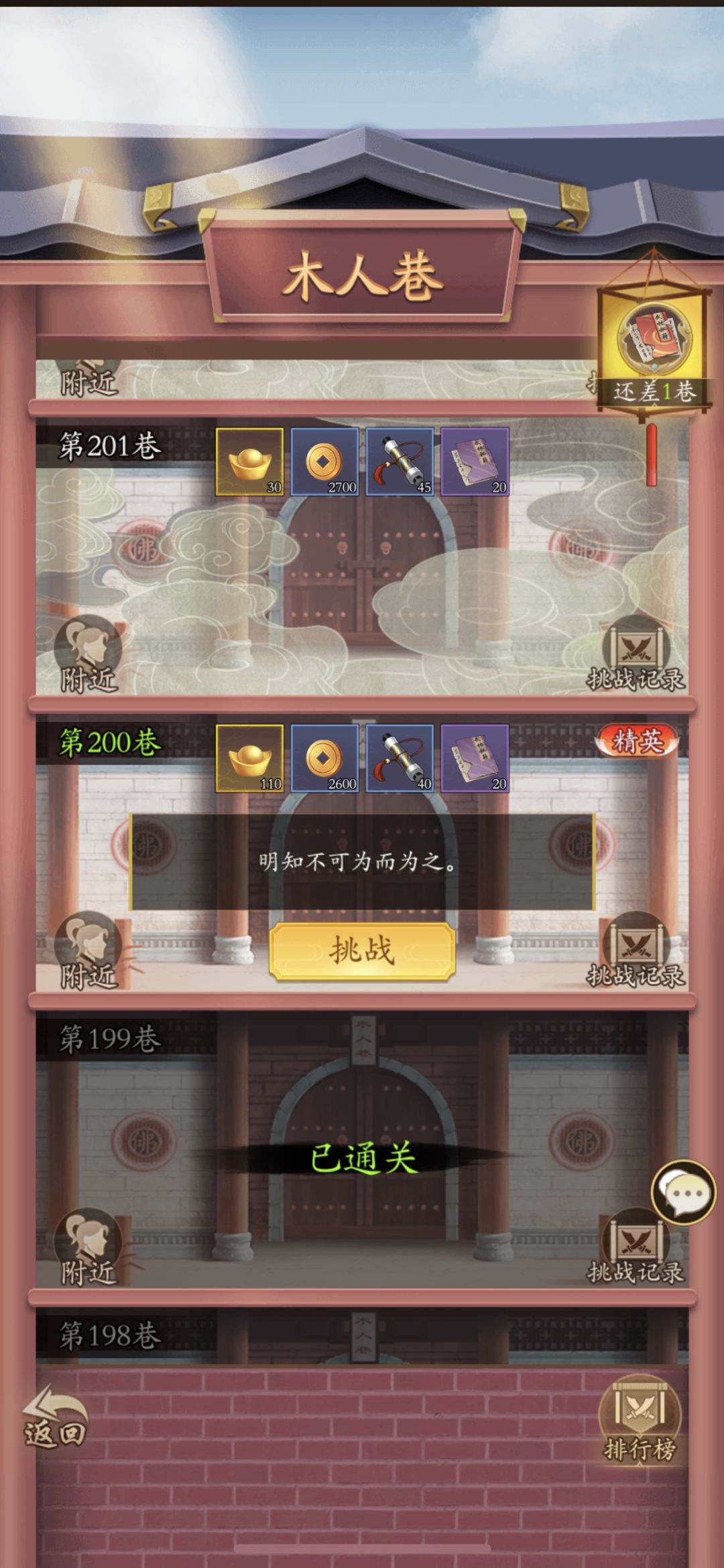 1000以后确实难,希望大家都把攻略发出来,大家都可能借鉴一下,本人不定时更新,过了就发#游戏种草计划#攻略#无名江湖木人巷#木人巷