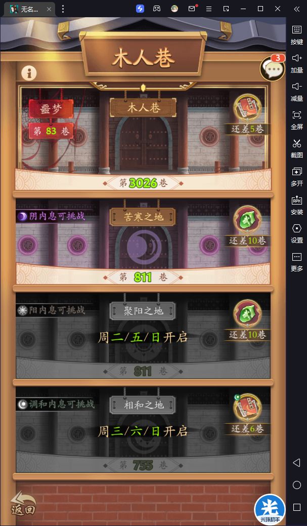 3000-3500,木人全是血牛要疯狂血瘀才能过,套路在图二,腾蛇那个位置要根据内息灵活变换 #无名江湖 #无名江湖木人巷