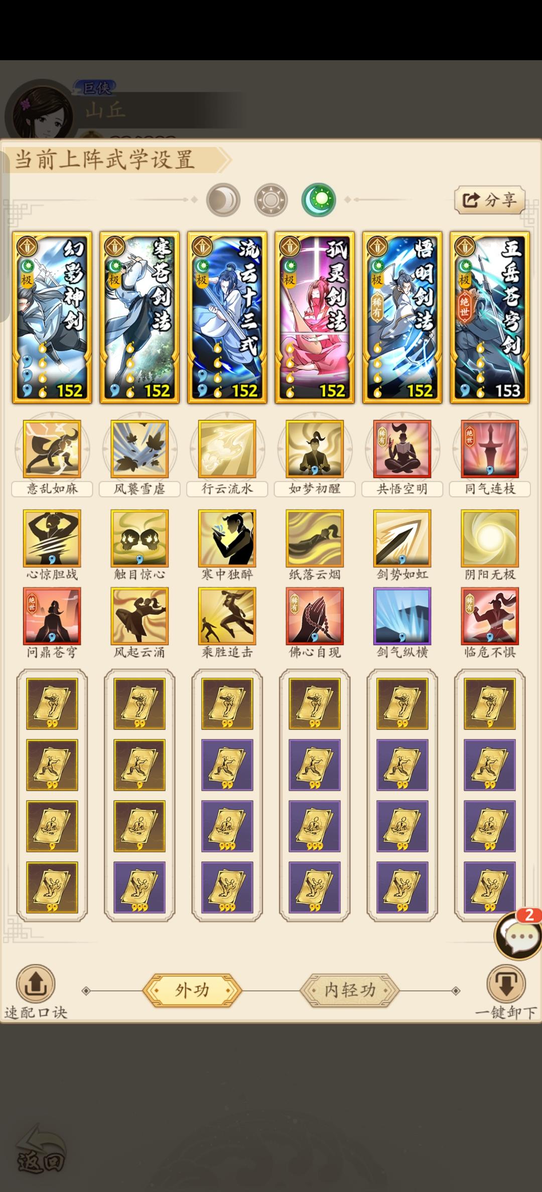 25层:上半奇门,下半单太极吸内(调换顺序或也可行); 26层~28层:上半单太极吸内,下半奇门。 把最好的聚气招式都给吸内,四两拨千斤,有奇效,奇门输出回血够就可以。 玉慈九剑(大彻大悟)=归西剑法,无大彻大悟归西剑法更佳。 奇门阵容 cEc+WmJH03j13O5KI35h6Ow78b8VS62U2LE33l4Ke26G6ql18ym5ZJk38xk69ch14aL35j # # 复制本代码