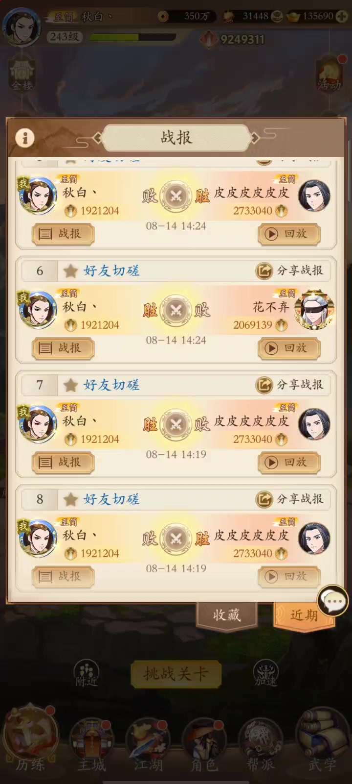 虽然切磋了二十多把才赢了这一把,但是其中有一半以上是打出了龙王被一血反杀,毕竟v9打v15以上(我不确定是15还是16反正至少15)奇门作为版本t0,还是会有机会被反杀,这里想说的是因为我知道后面的新区奇门玩家很多,只是给大家提供一种可能,除了吸内之外的可能(毕竟吸内不好玩,而且不好爬三系塔跟噩梦塔)阳剑是我个人觉得在四系流派里伤害爆发力数一数二的流派,而且我这一套是平民流派,适合氪度不高且没有千