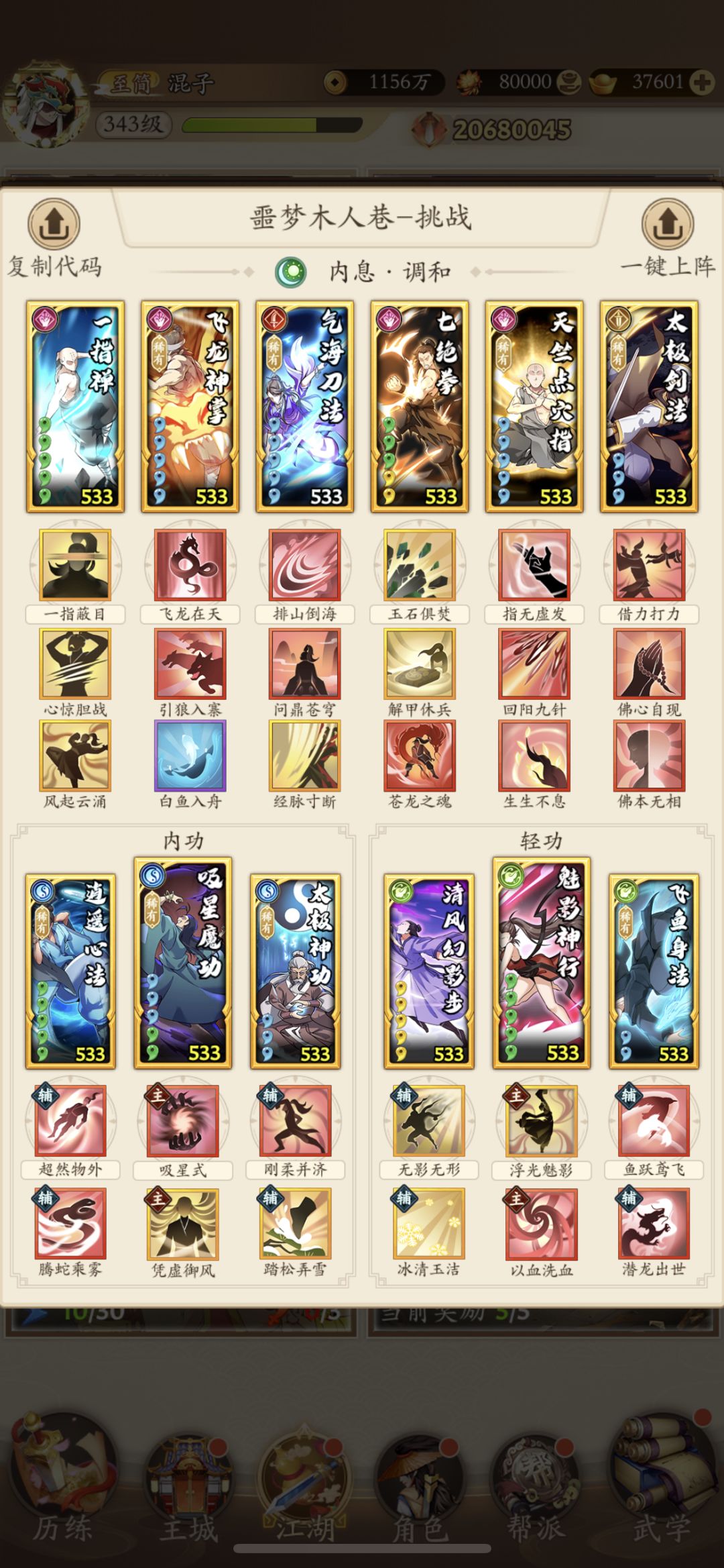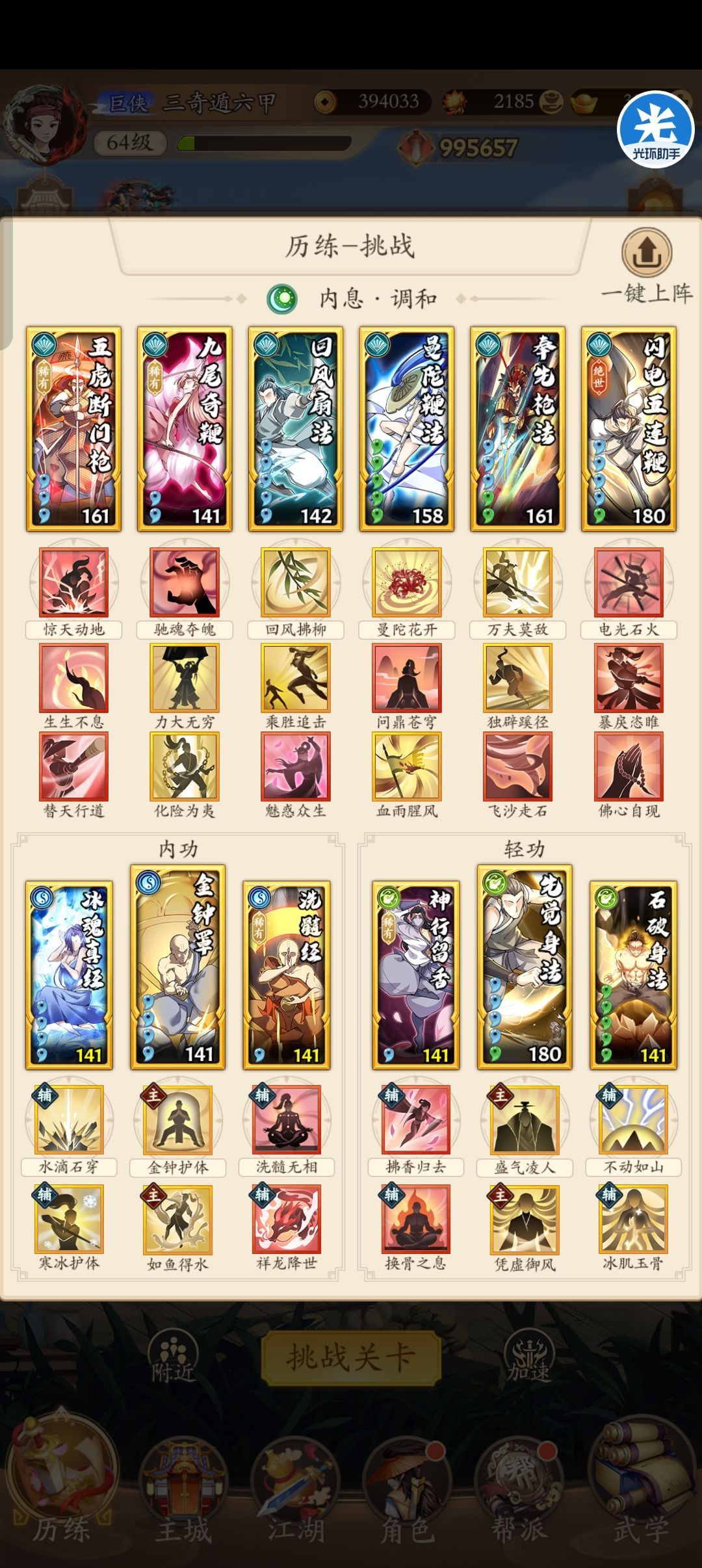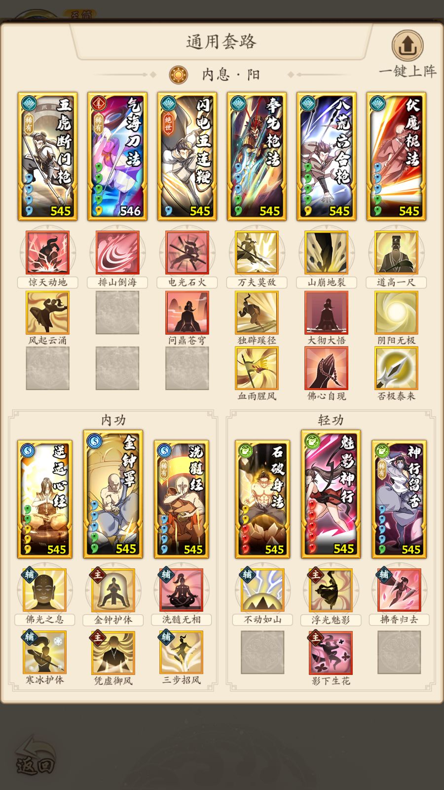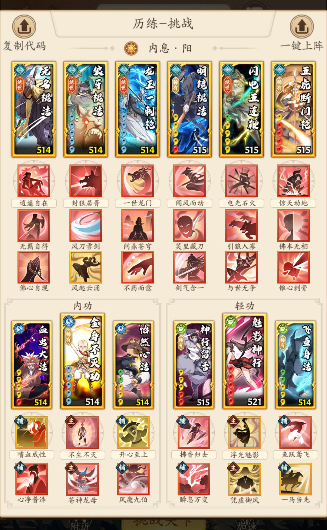 25层:上半奇门,下半单太极吸内(调换顺序或也可行); 26层~28层:上半单太极吸内,下半奇门。 把最好的聚气招式都给吸内,四两拨千斤,有奇效,奇门输出回血够就可以。 玉慈九剑(大彻大悟)=归西剑法,无大彻大悟归西剑法更佳。 奇门阵容 cEc+WmJH03j13O5KI35h6Ow78b8VS62U2LE33l4Ke26G6ql18ym5ZJk38xk69ch14aL35j # # 复制本代码