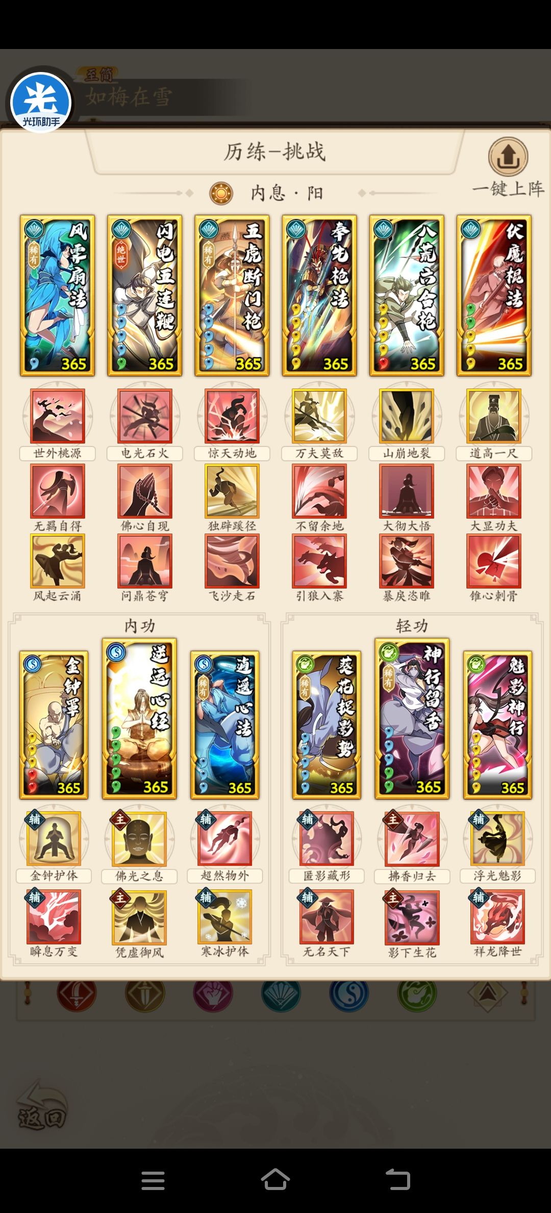 前言:有小伙伴问新区阳奇门怎么开局,趁着今天有空就整理了一下,希望对萌新朋友有一些帮助。下面就废话不多说,直接开整。 今天开整之前先聊聊阳奇门,阳奇门和阳剑以及阳刀一样,以叠四系buff来造成高额武学伤害,因此特别怕天竺点穴(断buff链)以及(心惊)控制,因此主运气势(影下生花)以及培养(神行留香)都是非常必要的。阳奇门稀有武学主要培养(五虎断门枪)以及(神行留香)。前期因为先手优势十分明显,因