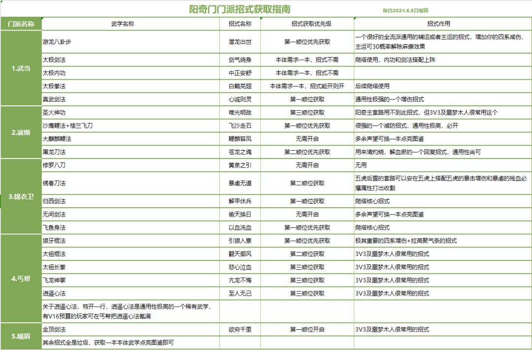 阳奇门前期招式获取指南2024.6.6秋白编辑