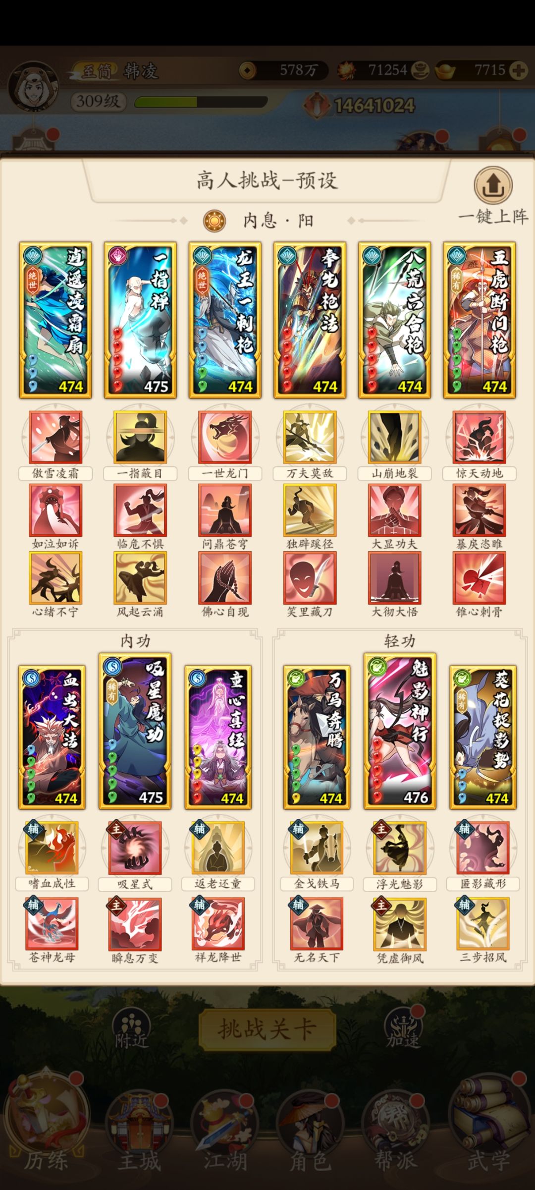 虽然切磋了二十多把才赢了这一把,但是其中有一半以上是打出了龙王被一血反杀,毕竟v9打v15以上(我不确定是15还是16反正至少15)奇门作为版本t0,还是会有机会被反杀,这里想说的是因为我知道后面的新区奇门玩家很多,只是给大家提供一种可能,除了吸内之外的可能(毕竟吸内不好玩,而且不好爬三系塔跟噩梦塔)阳剑是我个人觉得在四系流派里伤害爆发力数一数二的流派,而且我这一套是平民流派,适合氪度不高且没有千