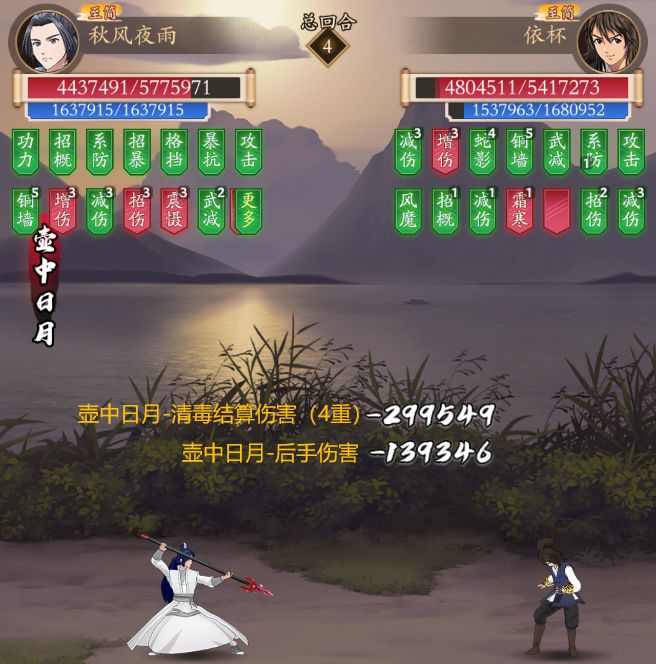 一、武学机制是:触发后手时进行判定,清除自身最多4个持续伤害,根据清除的dot数量对敌人造成伤害。 二、战斗中是分两段伤害,一段是后手伤害(伤害率90%)。另一段是根据清除dot的数量对敌人造成伤害(伤害率最低是0%,最高40%*4=160%)。 优点:可清毒、4重强化伤害率高。 缺点: 1、招式触发概率低,初始60%,满境界65%,不及格水平。 2、适用面窄,对上无dot套路对手,没二段伤害甚至