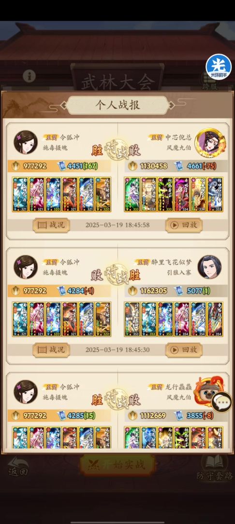 这是我奇门号1-7天都是用这3套打的地狱4,优点能过,缺点回合数长一些。指点都是快马加鞭。后面是我奇门号和剑修号的对比图,剑修号本来也想发的但是中间有几天改了一些有点忘记了。