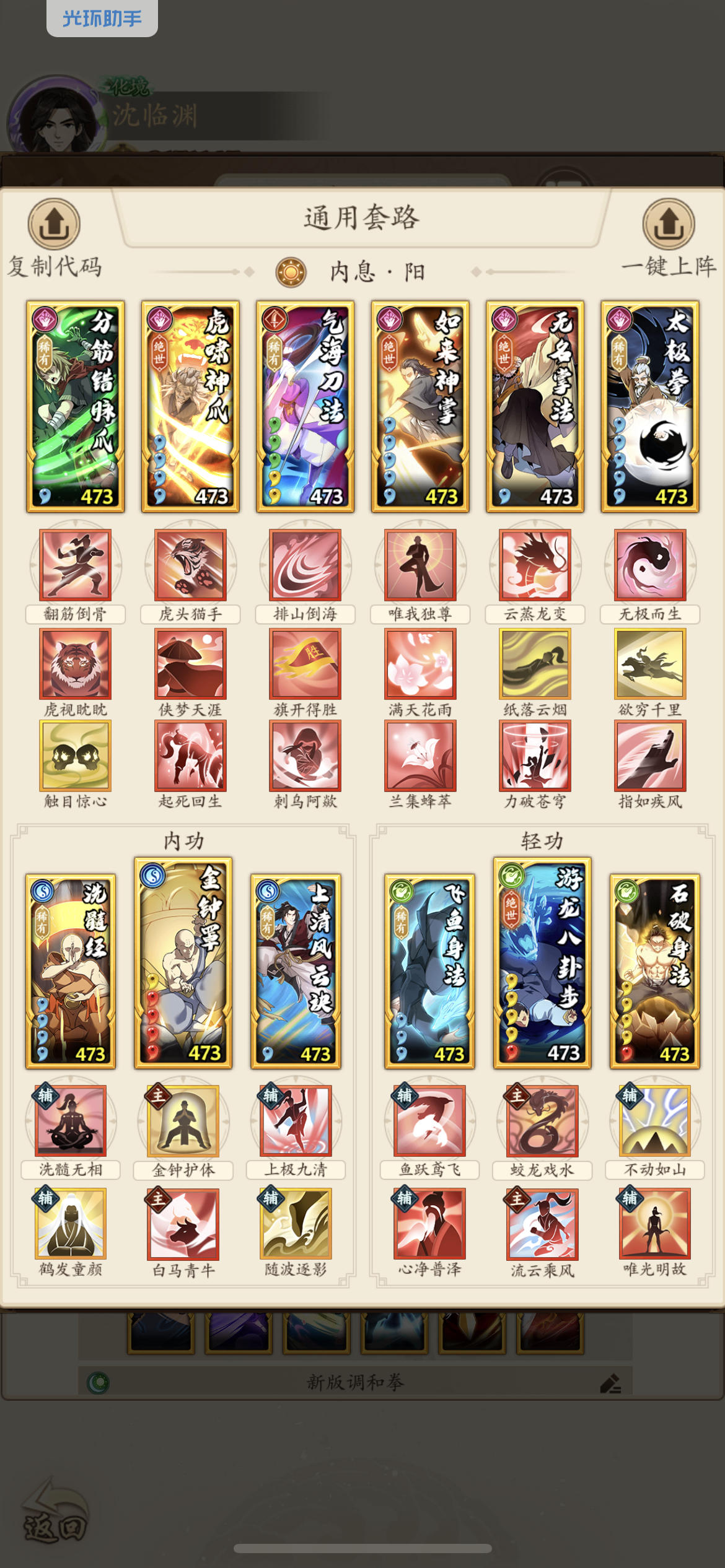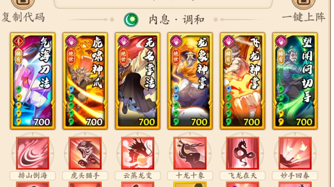 新招式淡泊名利对调和拳可是大加强,我们这里选择主三个,白牛,后发,三步, 所以推荐这套非常便宜的调和拳,内功轻功都是普通 当然调和拳的内功轻功选择很多除了金钟霸道不动,别的普通可以换邪魔金顶或者为家等稀有,下面是内功轻功搭配,新招式主辅都一样,只是解破绽位置不同下面是比较好用的一套调和拳cEc+wMjH03I37E9Ox68J5haQ8FZkr42G7Wo27AZMX73O6ML1YBw8
