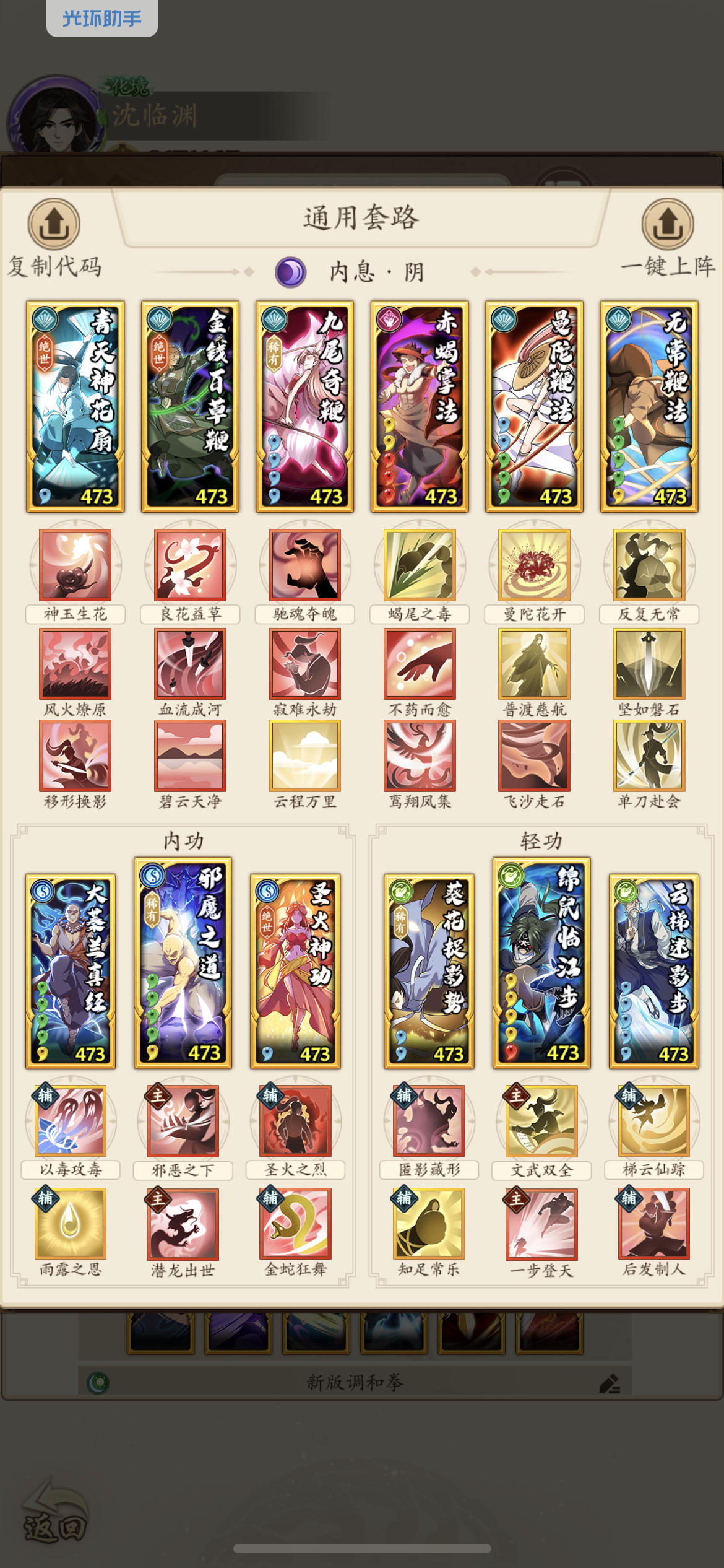 随着四系阴刀的扛把子-大力的陨落,阴刀老祖-霸王,酱油-苏打的佛系,秋白大佬对四系阴刀的不屑一顾,目前四系阴刀,尤其不用寒月的四系阴刀,是另类般的存在晚上闲着无事,研究了一下搭配,根据四系迅疾阴刀特点,聚气,拉条快和降低对方聚气的特点,结合目前自己装备情况,搭配了一套如下阵容该阵容打阳剑,阴剑,调和剑,阳奇,阴奇,调和奇,阳刀,调和刀,游龙阴刀,调和拳,吸内胜率均相当可观对于同战力阴拳胜率也