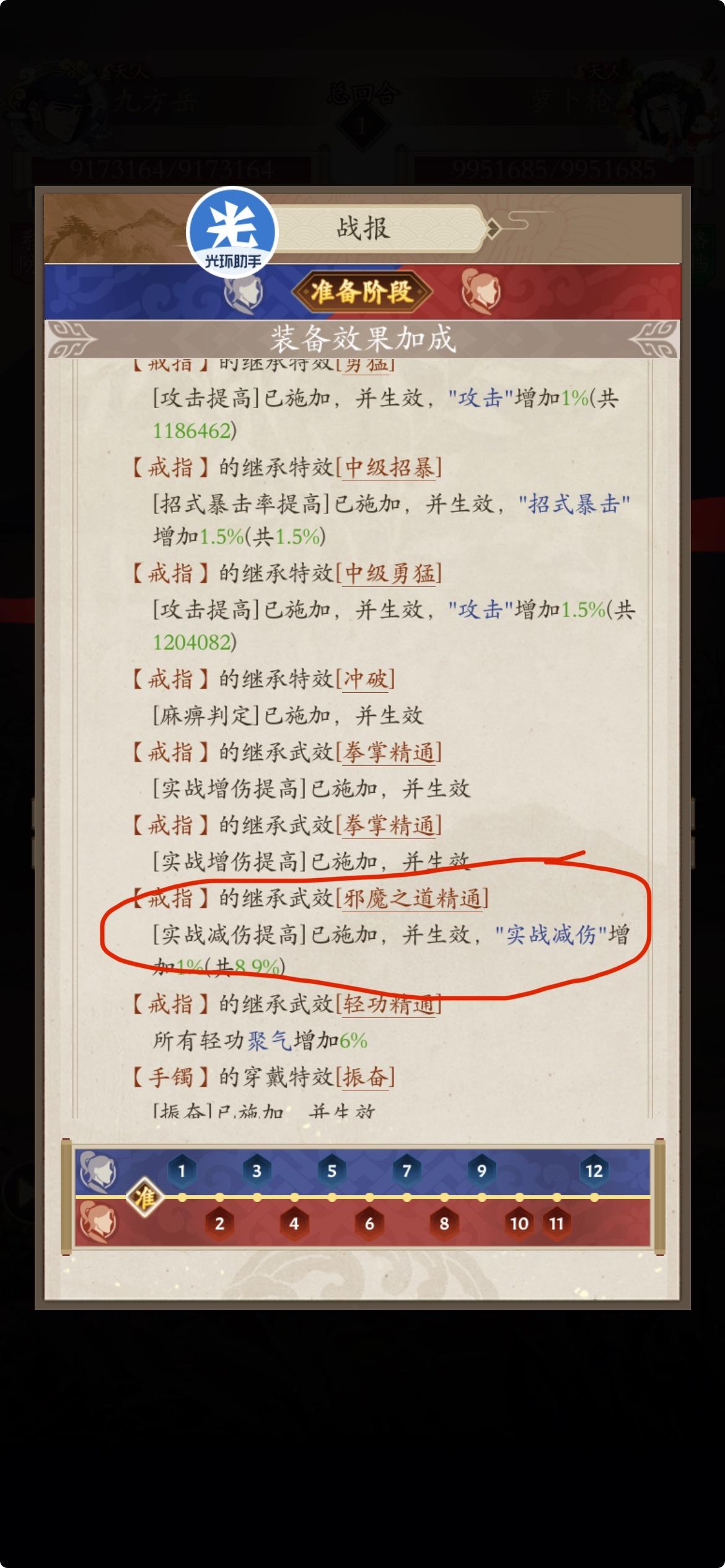 有没有大佬知道 战报里准备阶段的实战减伤是由哪些部分组成的。如图是第一次装备提升的实战减伤描述。那么计算装备之前的7.9实战减伤是怎么来的。是否跟基础属性有关。希望大佬解惑