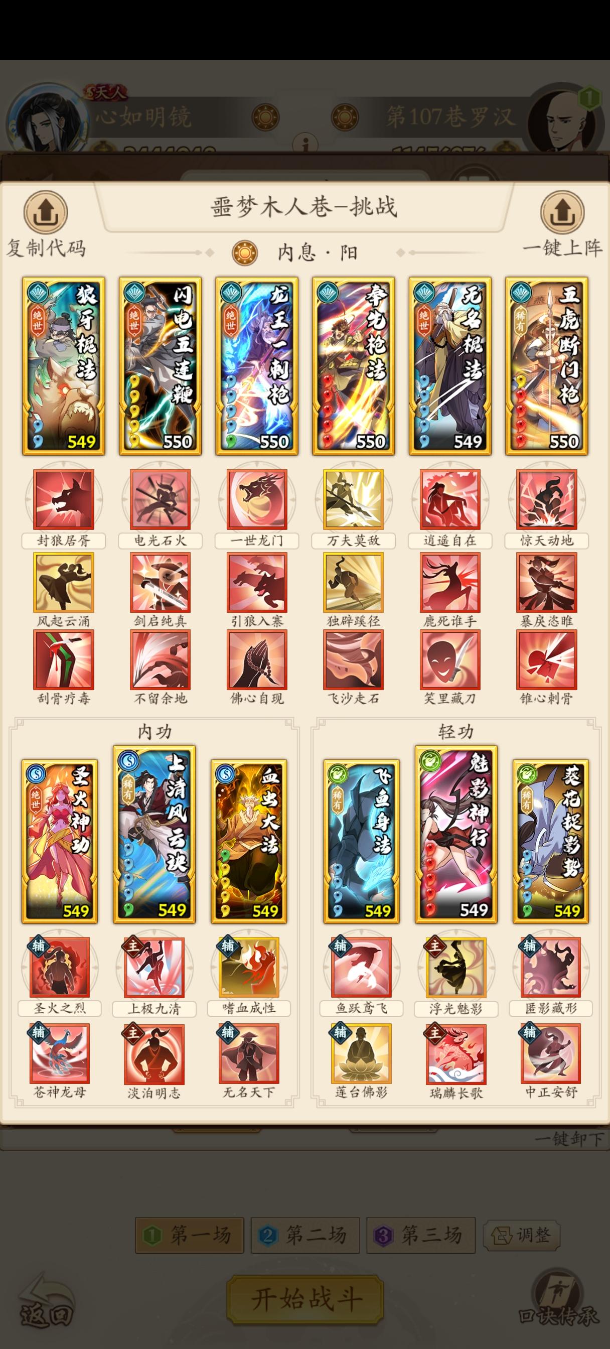 先贴阵容与代码:cEc+wmJH01t67e8br4ZK8Jg36mZVe99l5VE78v4KE65N6zar5Yp5YBR79ex5yCl4zJn7Zx # # 复制本代码,在游戏中-布阵导入淬锋:先手5聚气2攻击1气血后手4攻击4气血随着新年气势招式文华映世的到来,阴拳的传统气势先觉身法终于遇到了最大挑战,因为传统先觉受到配招影响,大概率吃不满25%攻击加成,因此考虑使用各种减伤