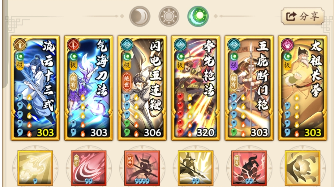 有言在先:该号套路纯为科研尝试,不建议新手尝试注:以下套路纯为娱乐 强度未知 按理来讲能打套路展示主运轻功招式空缺位为无名风赖的位置(不上招式是为了不祸害新玩家 玩过两三个月的玩家自然知道要上什么)文末感谢好友岭南响马🥰🥰🥰