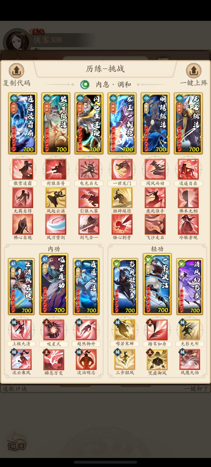 这是这几天测试搭配!为四系搭配!也可游龙四系混搭!详情参考秋老师出装!cEc+wMJH03U27e8Qn93h7Ge35b7OV82l7CW7Zq4kAO5N9GK78yawZXo3YbAX3CY63wH26I # # 复制本代码,在游戏中-布阵导入感谢各位兄弟们一起做的努力也希望下一期剑剑人能够崛起