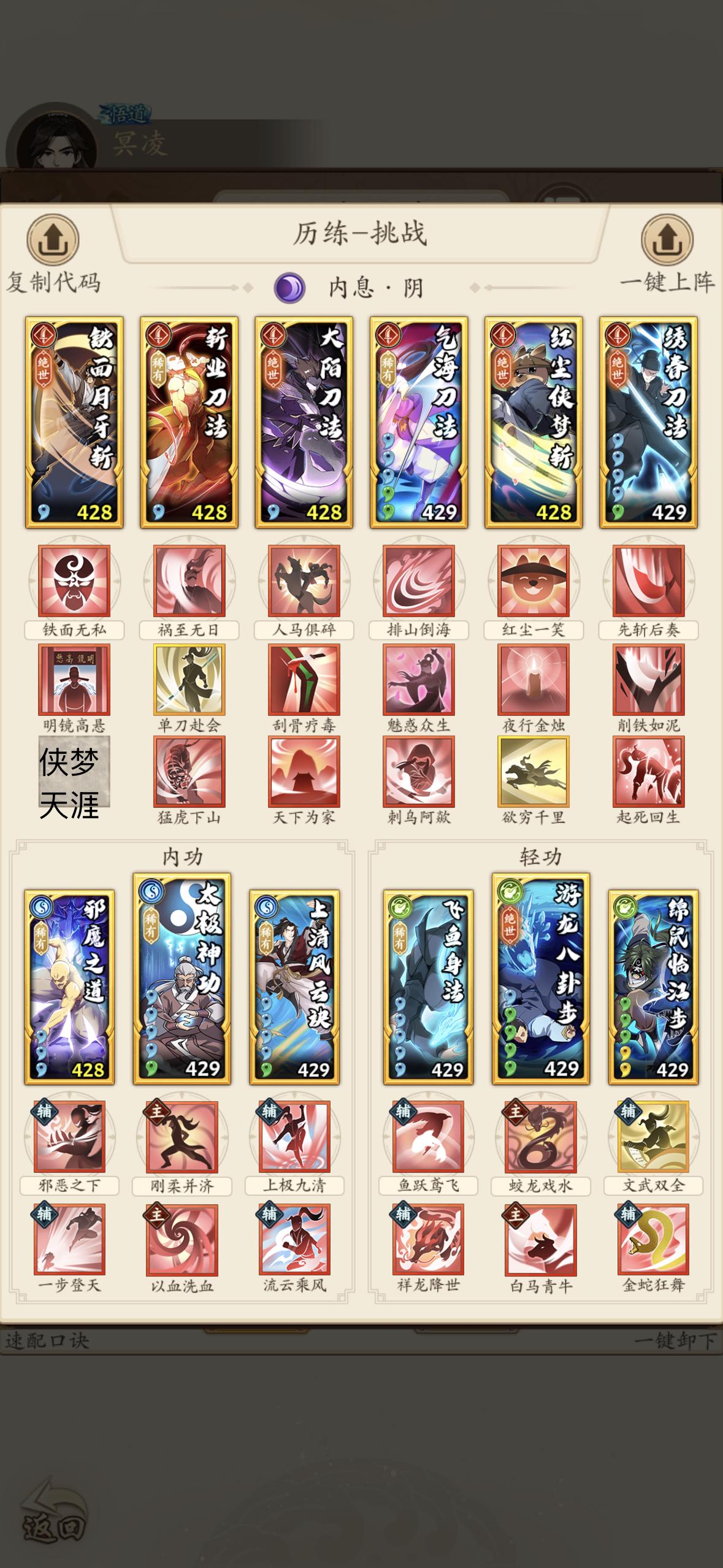 希望能出一个玉女心经的上位替代品,这个武学的用处纯粹为了加连击😂完全等于那个蓝色加连击的附体。 阴剑给我的一个比较难受的点,就是感觉有点缺破防,现在策划有意加长对战回合,但是阴剑长回合很吃力,还有就是阴剑,这个流派必须先手,如果拿不到先手,有点乏力,给我的感觉就是开局就要先输2成。简单来说,缺破防、长回合续航拉胯,还极度依赖先手,没先手开局直接陷入被动,外加叠伤链易被打断、被控后输出直接白板(这