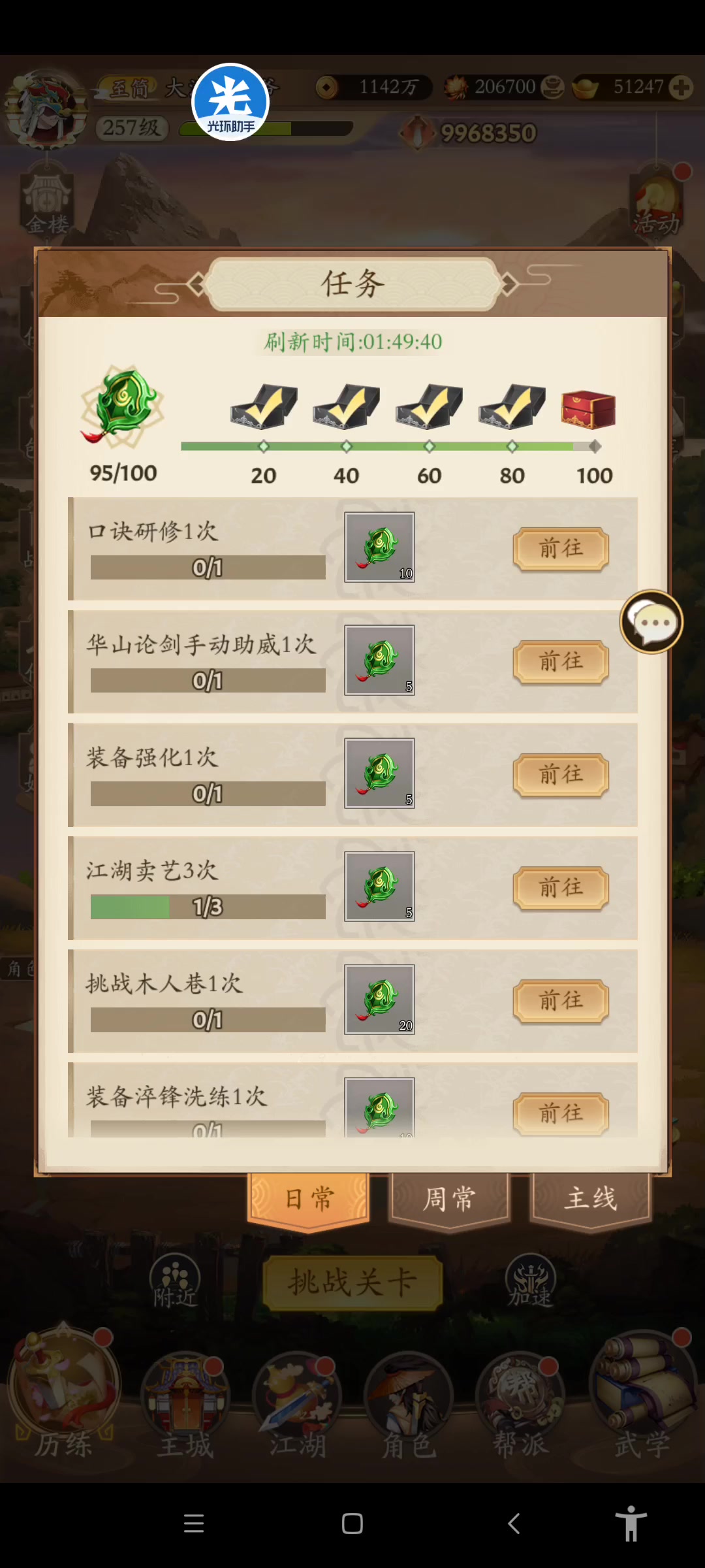 日常任务未完成,江湖卖艺次数没增加!