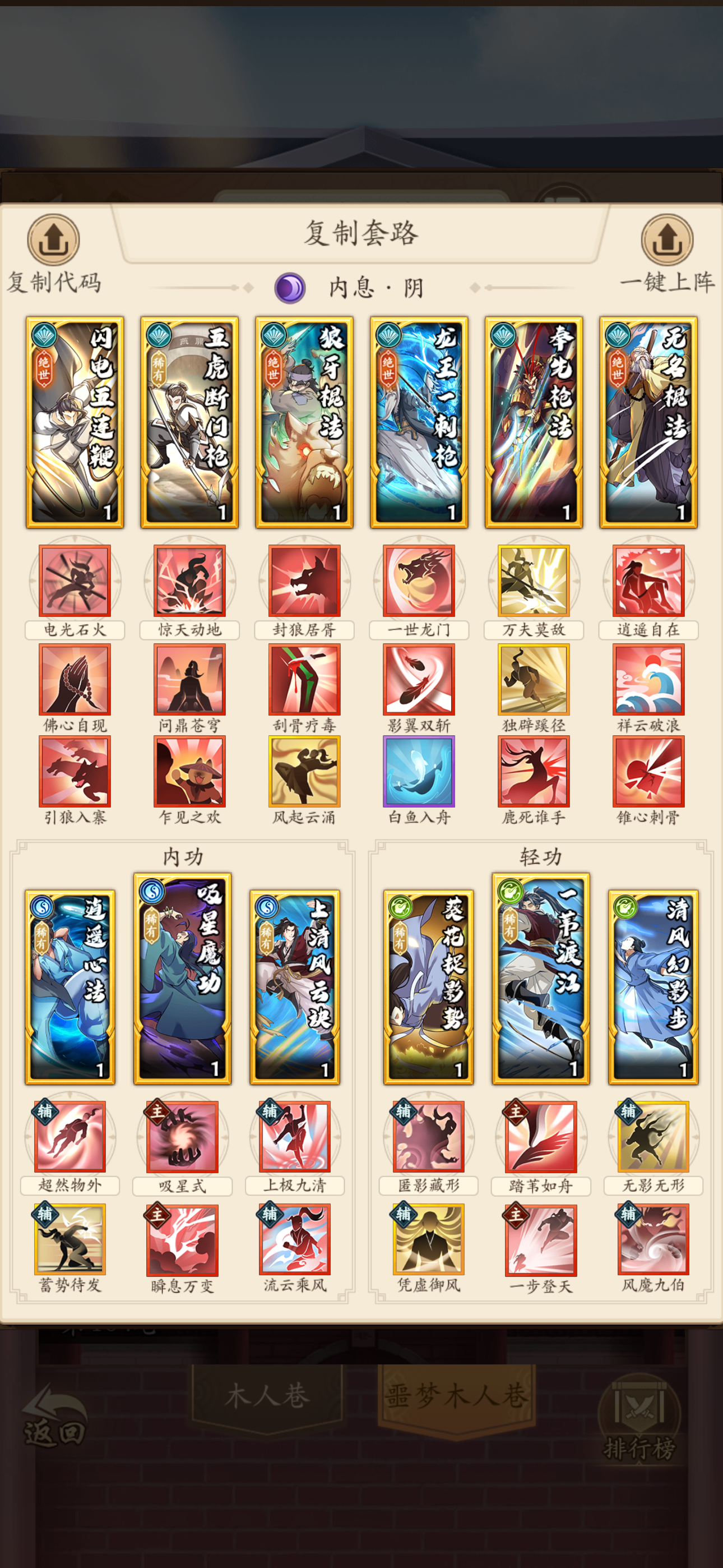 第一套(弱阴剑,调和拳)cEc+wmjH02v37e8QO73h7yaa5b1Nap7O7jL75N5iAt2w7CamybAwzXm58yK46yL2zHT53C # # 复制本代码,在游戏中-布阵导入第二套(弱调和奇,调和拳)cEc+WMjh02Ap7e9oq81n8qv37y3haT7j5BAA7o5NL77C2WaMYbAwzXm58YK43cl2Zht56Y # # 复制本代码