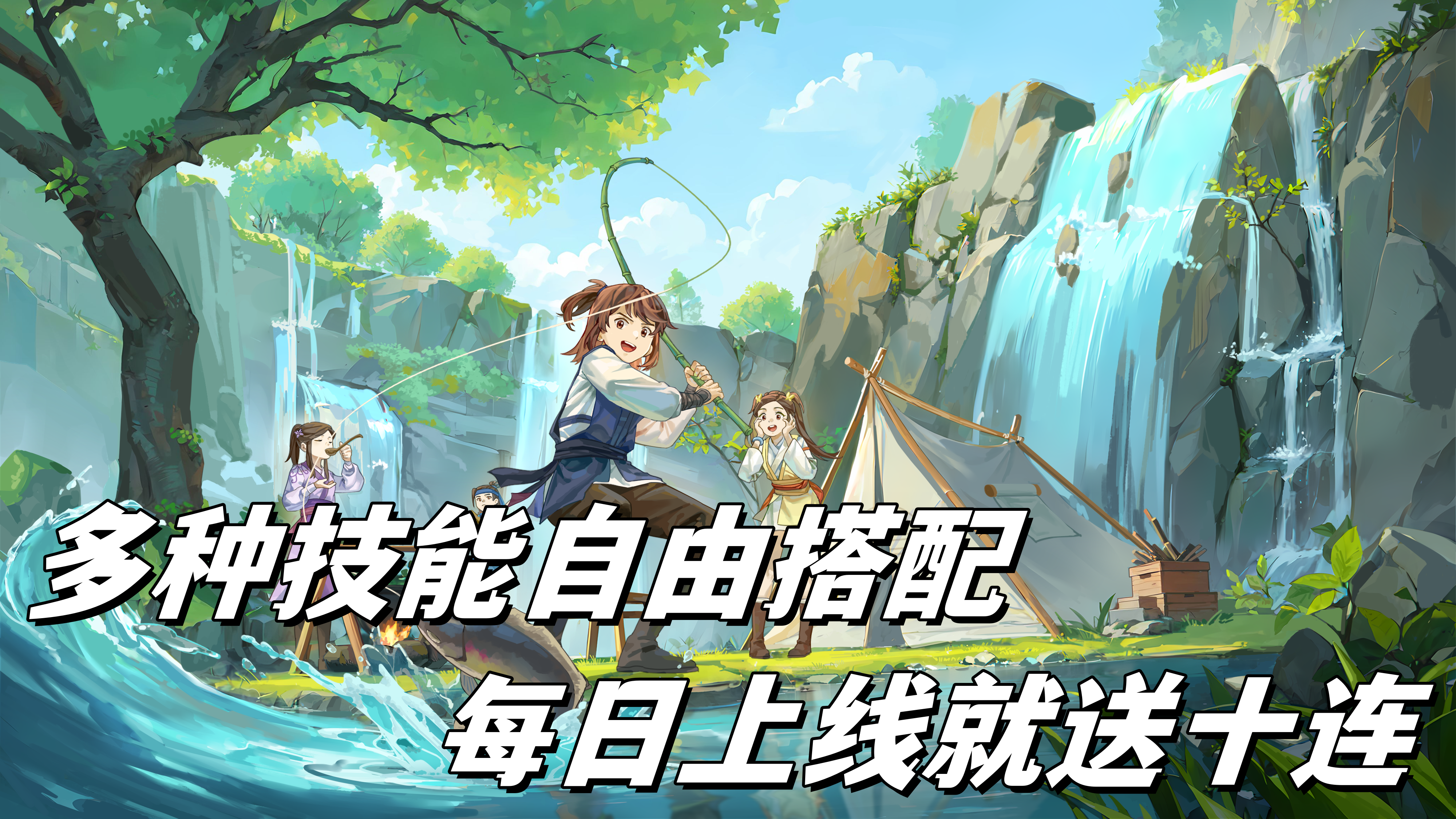 每天都送十连抽?绝世武功抽到爽!策略武学战斗,酷炫武学招数。各种奇遇机缘疯狂砸脸,密室解谜揭秘江湖恩怨!