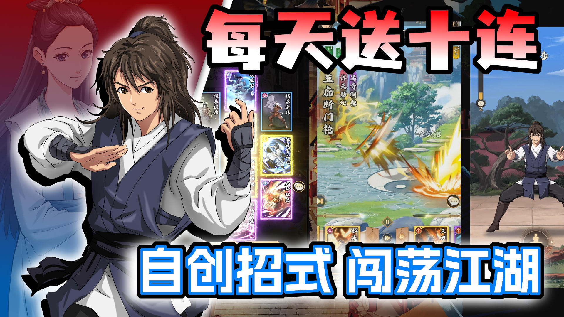 十大门派百种武学万种搭配,自创招式创意无限!每天还送十连抽