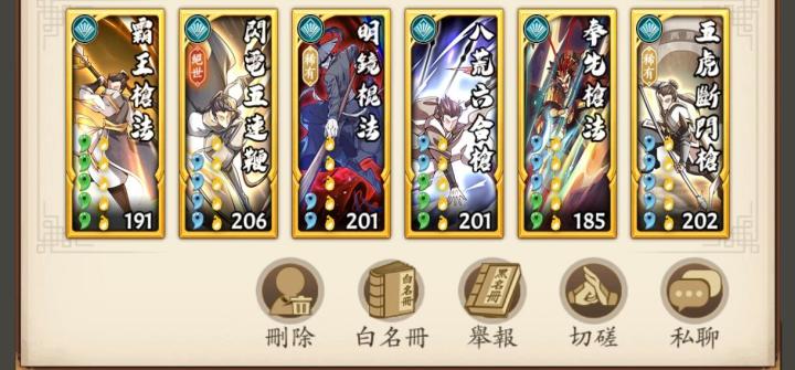 一次挑战分为10场比赛,每场比赛前玩家都可以从武学库搭配组合自己的套路,进入比赛。