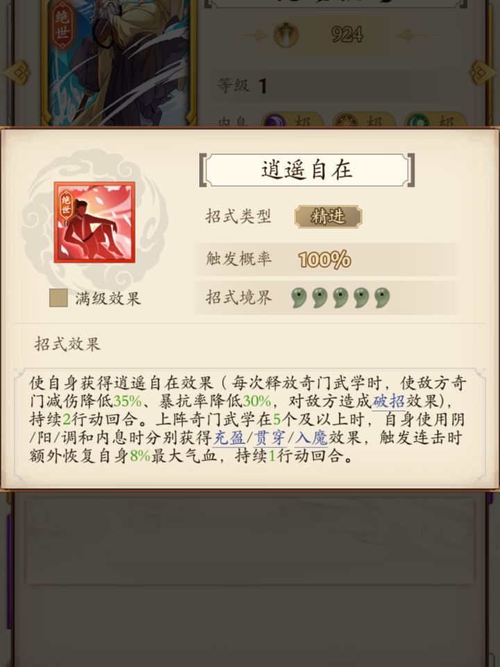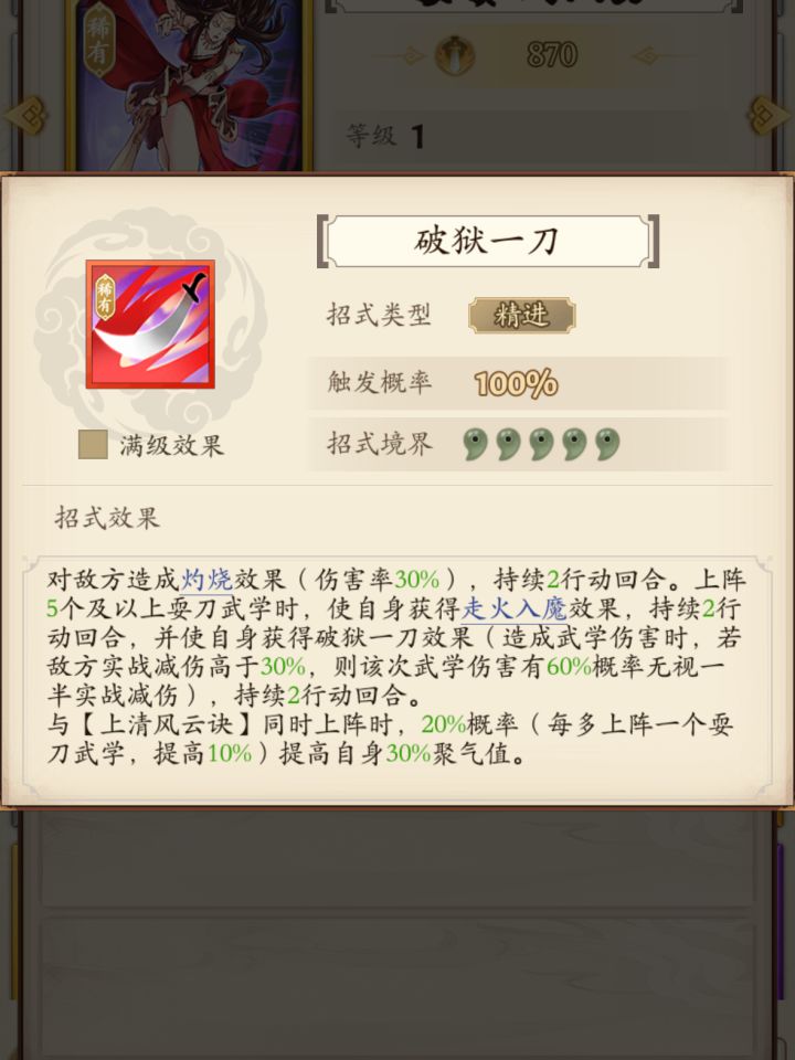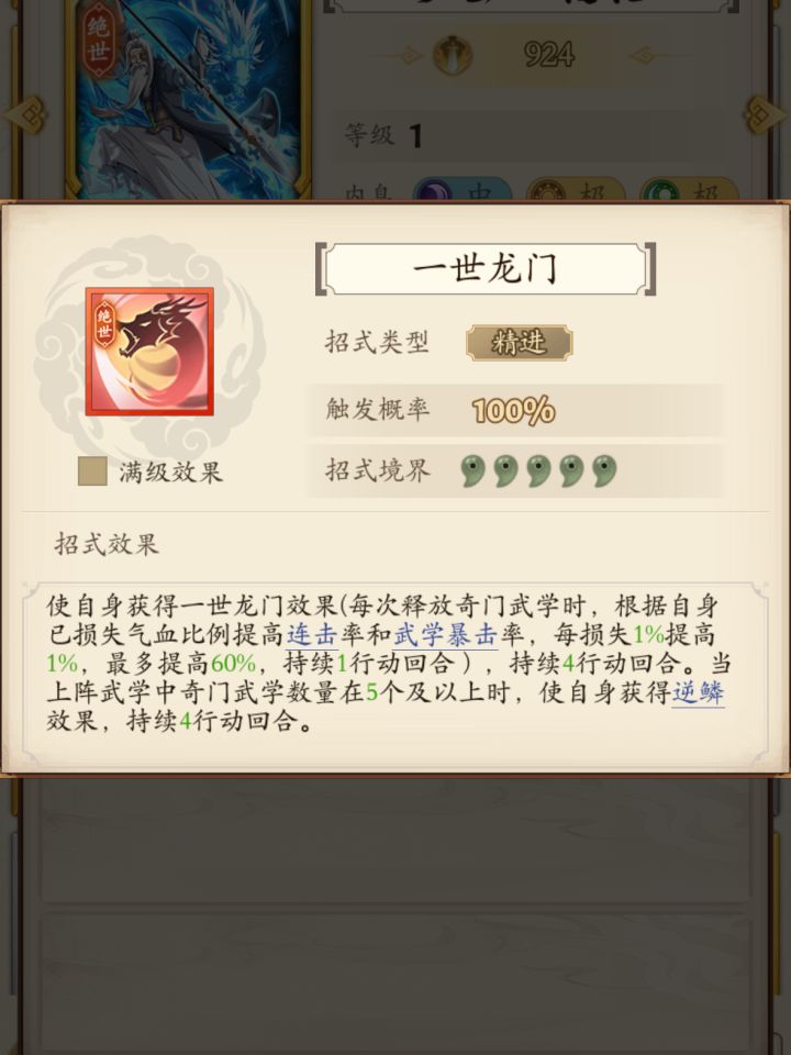 很多人都在问游龙阴刀前期能不能玩儿?经过我本人今天花费了7个小时的试招。终于试出一套游龙阴刀最初版本。 开局一如既往的三连惊,(对方一般会在第四或者第五位武学放置先手)所以用绝冥提供后手收割和拉条。 楼兰给绣春刀招式出手率15%.和破绽降低20%防御。 绣春刀通过泰然自若取消一切先手控制,再结合豁然通透10%触发先手和20%伤害。 绣春刀最后总几率为95%出手率再配上心诚则灵总共40%的招式伤害。