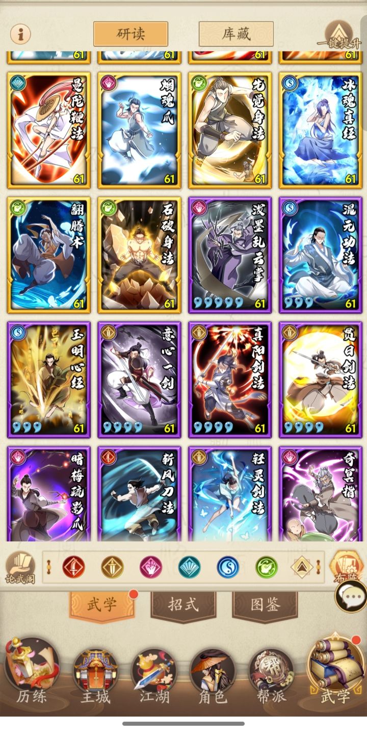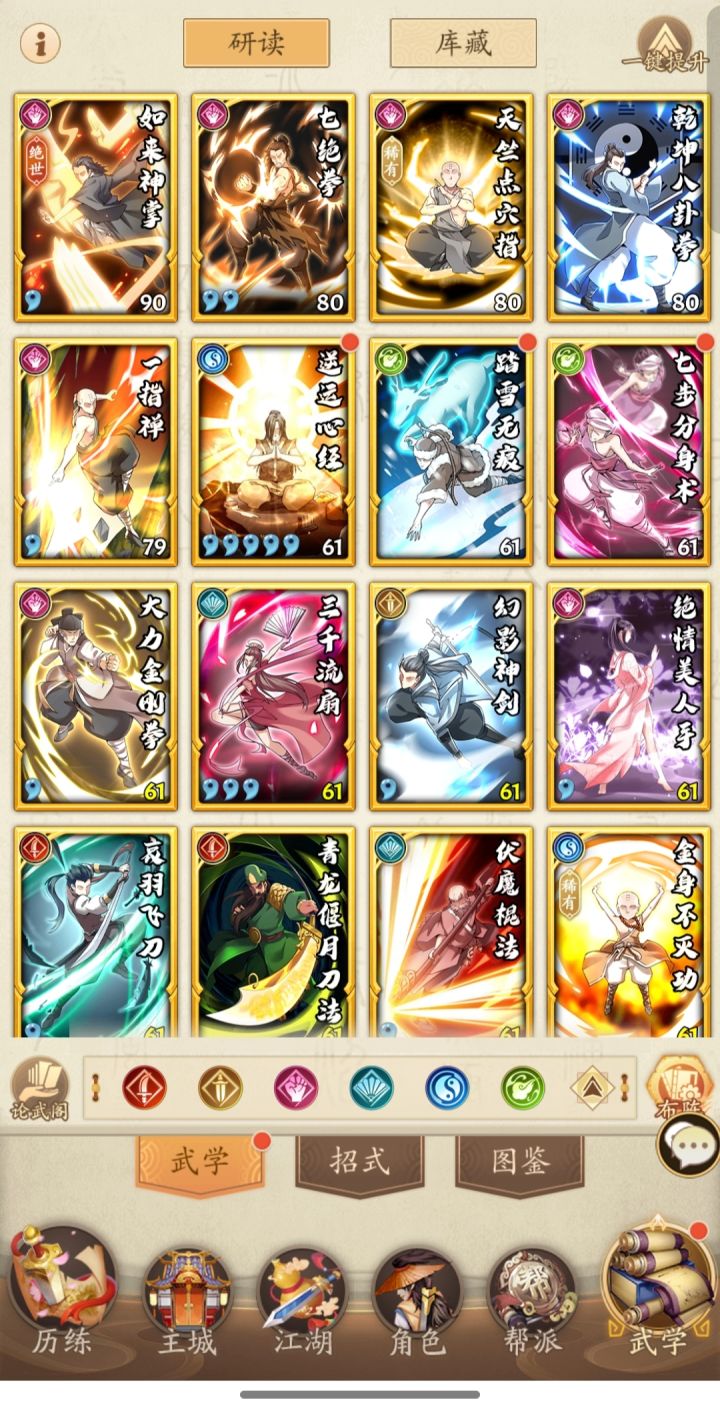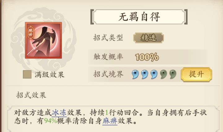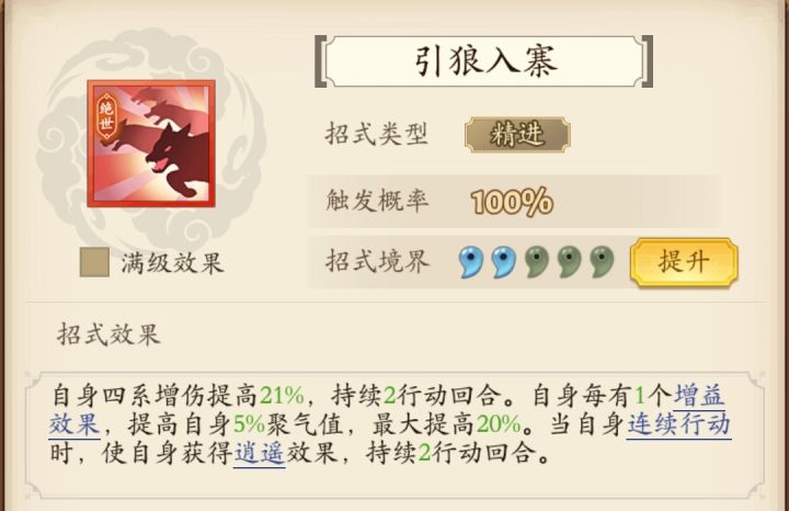 经过改动和相应的调整,最后做出调整,其他再改变也是锦上添花。其中流云乘风必换下莫失莫忘,我没有所以没换。最新码cEc+wmJh01i48Q6ni36o2pF52o3hM38o4mn43G4Hn32h4yL83caW4SW83dl94JN73wL4zJ # # 复制本代码,在游戏中-布阵导入 由于有了祥龙招式,改动啦第四位武学开始的招式,转向继续拉条提升伤害。全部变成先手后手精进模式,当然各位要