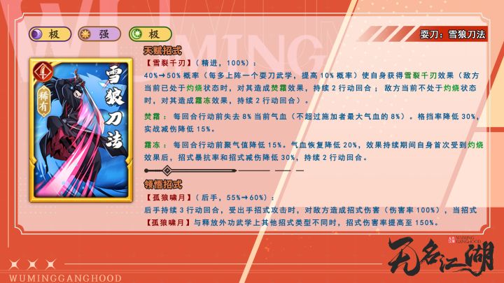 无名江湖有几个标志性事件,例如歘的出现,游龙的改版,我姑且把游龙改版后称为后游龙时代。前言:每个版本都有对应的强势流派,例如曾经的开局御三家是阳刀调和剑阴拳,前游龙时代甚至还没有调和拳这个流派,亦或者出现歘之前阴奇绝对t0,现在差点沦为下水道。因此强度只是一时的,仅供参考。先说一下划分标准。(所有流派都是装备大成,大后期对比,同时不提完全放弃其他流派针对的情况)即便有的流派强度高,但性价