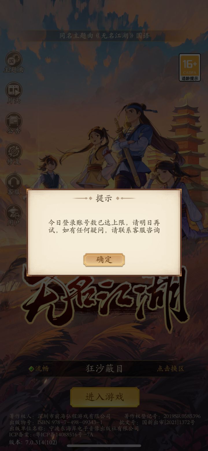 两天没登,咋还次数上限了? #无名江湖