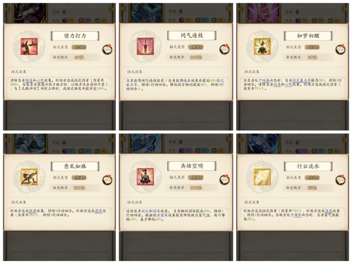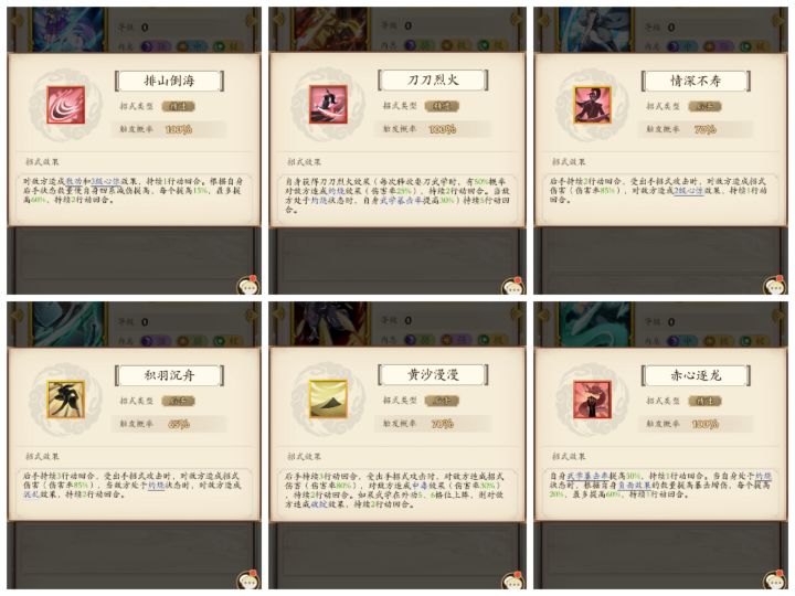 在游戏初期呢,大部分大部分充钱少还有还有就是不充钱的想要想要前期过的舒服一点,会搭配武学以及招式少不了。我也我也有一些我个人的独到理解以及前面的混搭思路,废话不多说让我们直接进入正题。首先就是技能与技能直接的羁绊,可以可以大幅度增强技能的武学伤害或者是效果。我我就来一举一个简单的例子吧:例如:〖炎檀剑法〗和〖如意破心经〗这是一个很迷很明显直接增加武学伤害的例子,诸如诸如此类的也有很多,大家