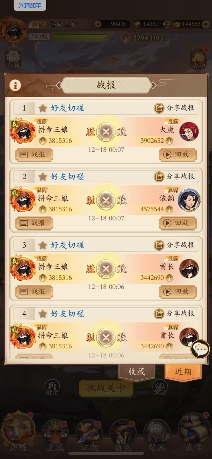 没啥合适的好友了啊豹哭[表情_豹哭]豹哭[表情_豹哭] 我快没素材闯江湖了豹哭[表情_豹哭]豹哭[表情_豹哭] 我找了很久都没啥合适的对手豹哭[表情_豹哭]豹哭[表情_豹哭] 大家进度差不多的可以通过论武阁加我吗?豹哭[表情_豹哭]豹哭[表情_豹哭]豹哭[表情_豹哭] 开切磋!开切磋!开切磋!豹哭[表情_豹哭]豹哭[表情_豹哭]豹哭[表情_豹哭] 让我来向各位少侠讨教一二 我现在197级左右 微笑