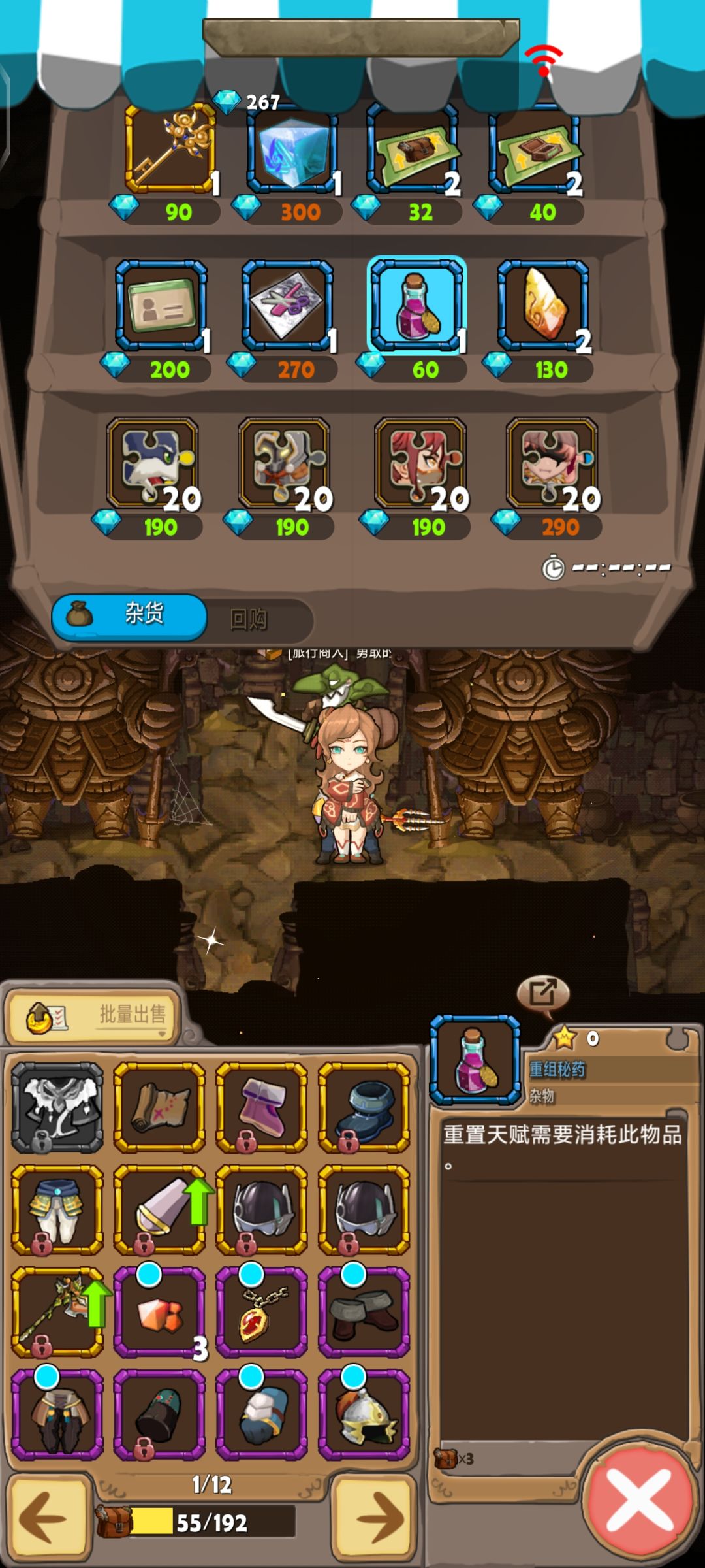 游戏里获取砖石有限,这里主要讲砖石避坑,大氪无视。新玩家在游戏初期可以开启2-3个背包和仓库,之后就要用砖石购买扩充券了,前面开一个要两张,越往后要的越多,一张50砖,这里建议不要购买开启,到14级后就可以进试炼了,在这里用魂技有几率刷出各种商人,上图 每次可以低价买2张背包券和仓库券,物品和价格都是固定的,商人不要放在路中间挡死了,移不走 新手阶段在试炼里看到蓝头以上的怪点开看一下,带有反射的就