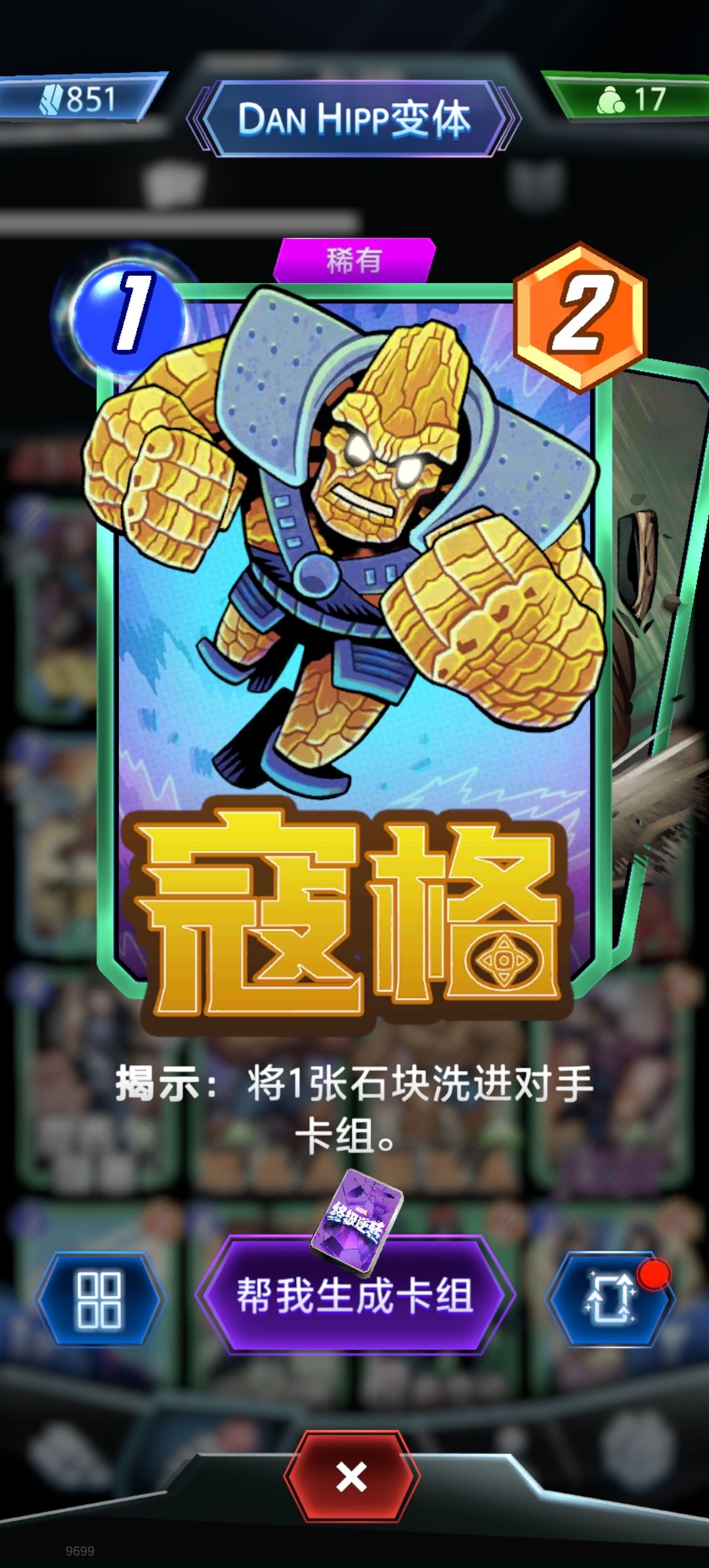 完了大概一周,分享一套自组的一池月亮龙卡组,三天从45上了无限。 看了下论坛,一池二池应该是最容易上无限的等级,目前一池环境动物园居多,前期靠高攻的单卡撑场面,最后两回合再发力,牌序好的话4费准时复制2条月亮龙,如果牌序不好就月亮龙加浩克。打发核心:4.5费见势不好赶紧溜。