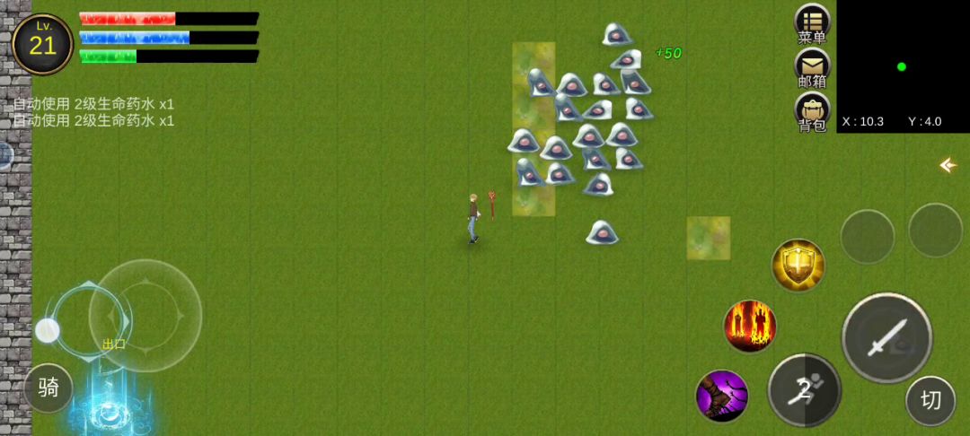 4、AK强化到+10后去坐标170.10左右刷10级的乌龟,这只龟是火属性的,最好用水属性戒指,老龟爆十级的龙蜥套,加血量和防御的。凑齐加上自身也到了十级就可以去村庄东面的史莱姆营地刷那只喷火的史莱姆BOSS了。此时就建议弃游了,后面刷史莱姆BOSS贼没意思,在一个需要AOE技能刷的地图刷一个爆率极低的AOE技能。