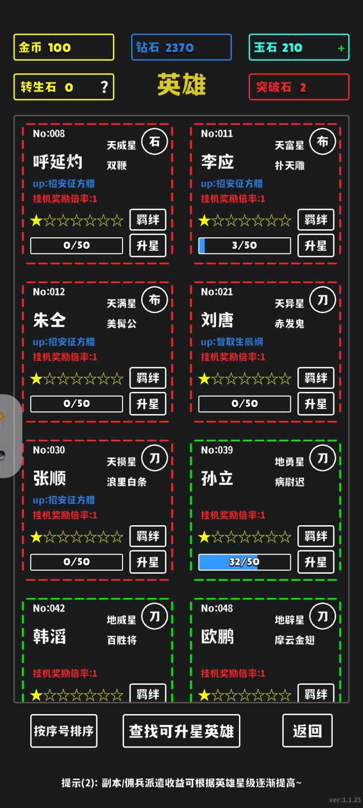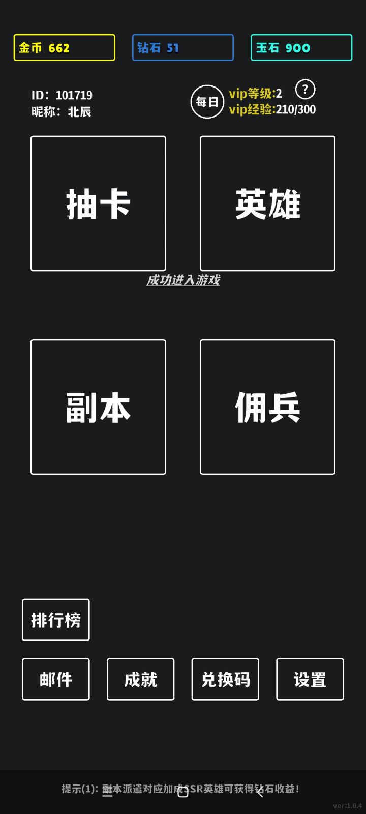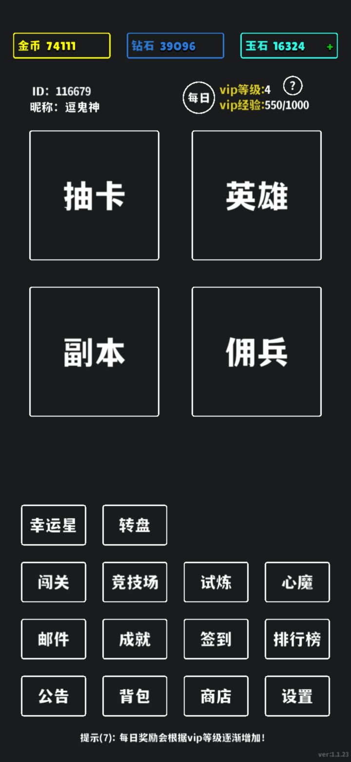 游戏机制是被作者摸到了😆,就是抽卡得英雄——挂机拿金币或钻石——再抽卡...无限循环