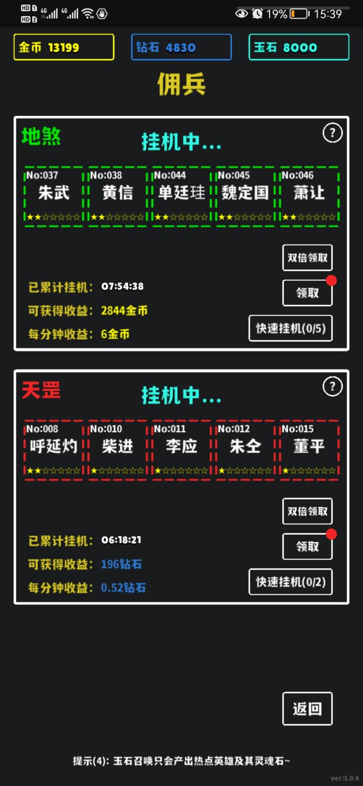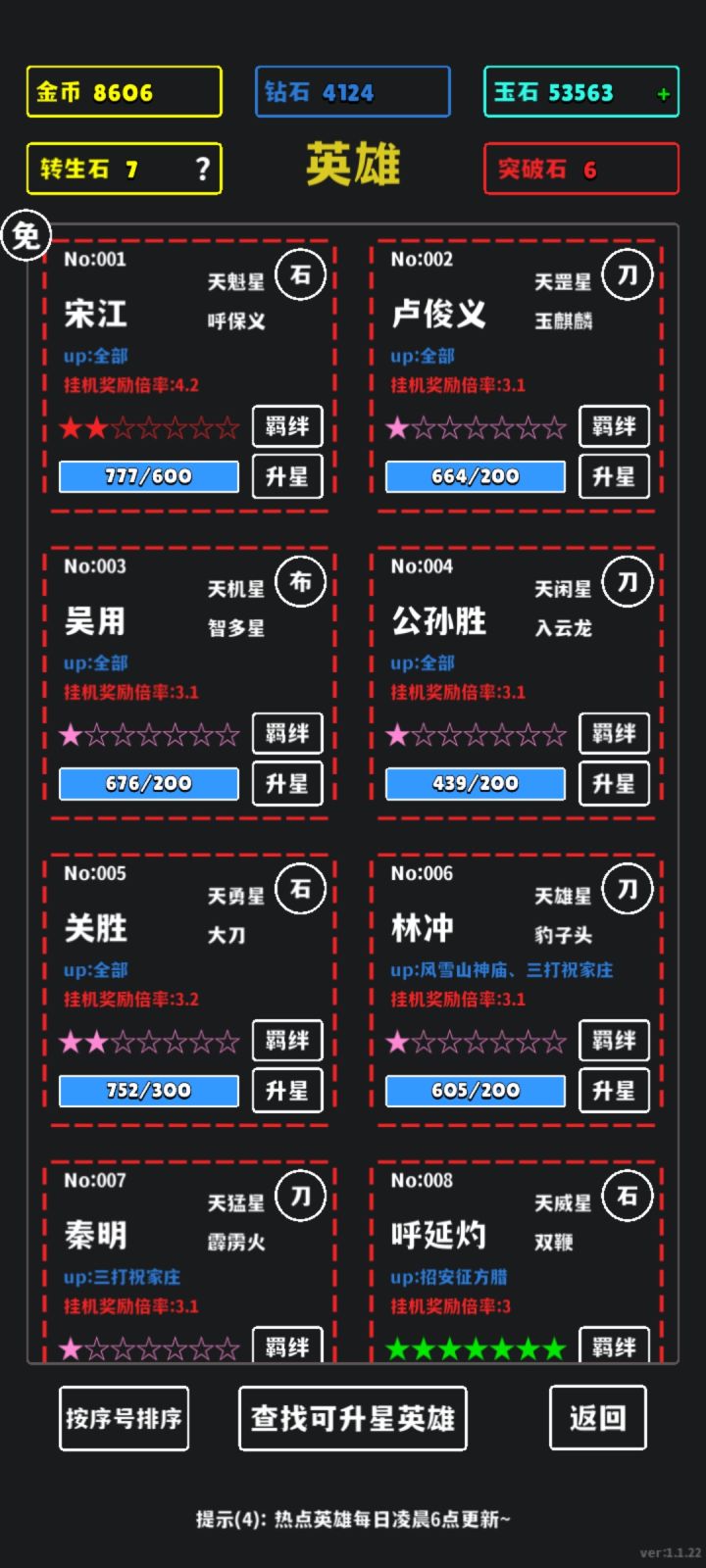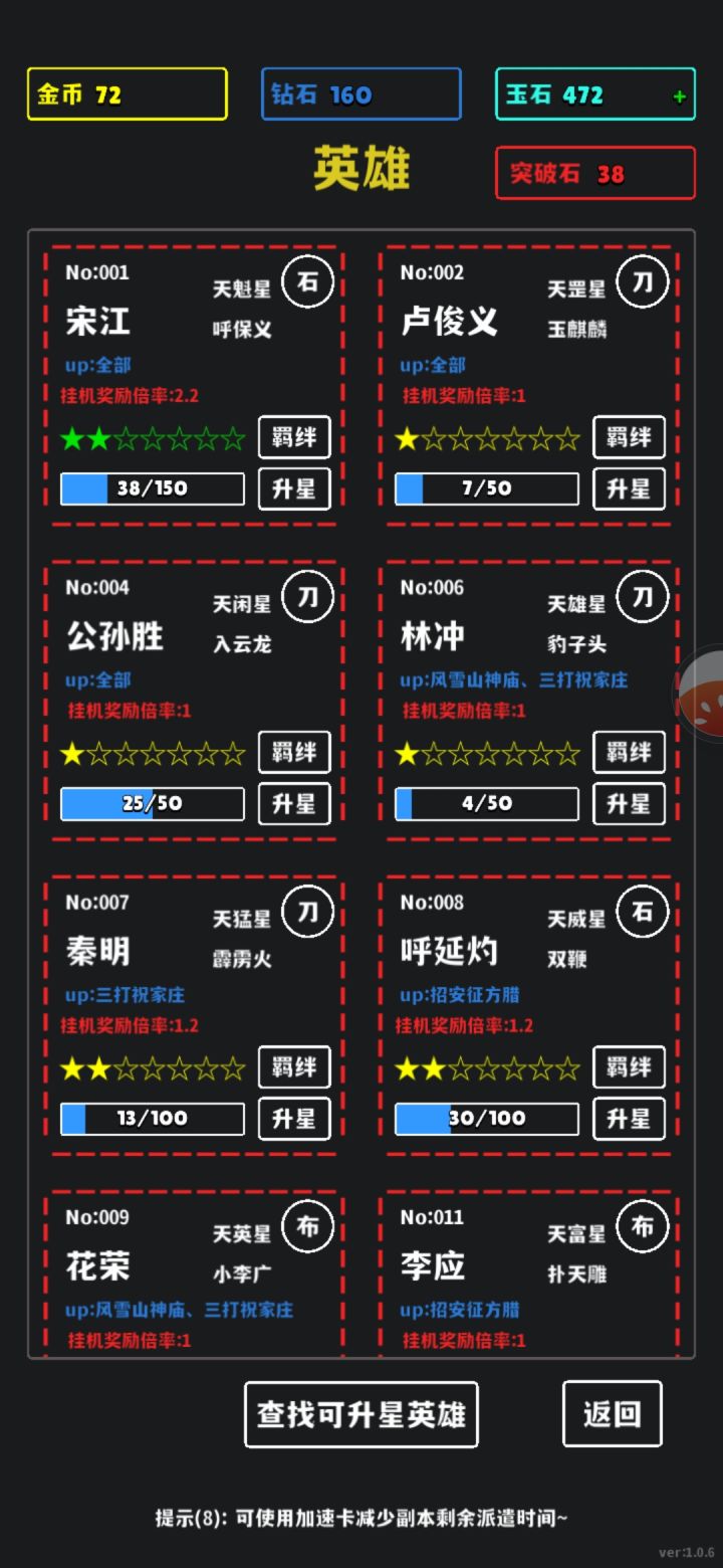 1,感觉各种资源获得稍微有点少啊,副本挂金币就不能挂钻石,只靠佣兵金币又不够用,粗粗算了一下,一个英雄14-21星升星要14w金币,108个就要1512w,一天5w,得300天才能到21星,如果去副本挂金币,钻石又少,抽不了钻石和玉石,英雄碎片和突破石又少,我现在副本全挂钻石,碎片有了,没金币和突破石给人卡这儿了。