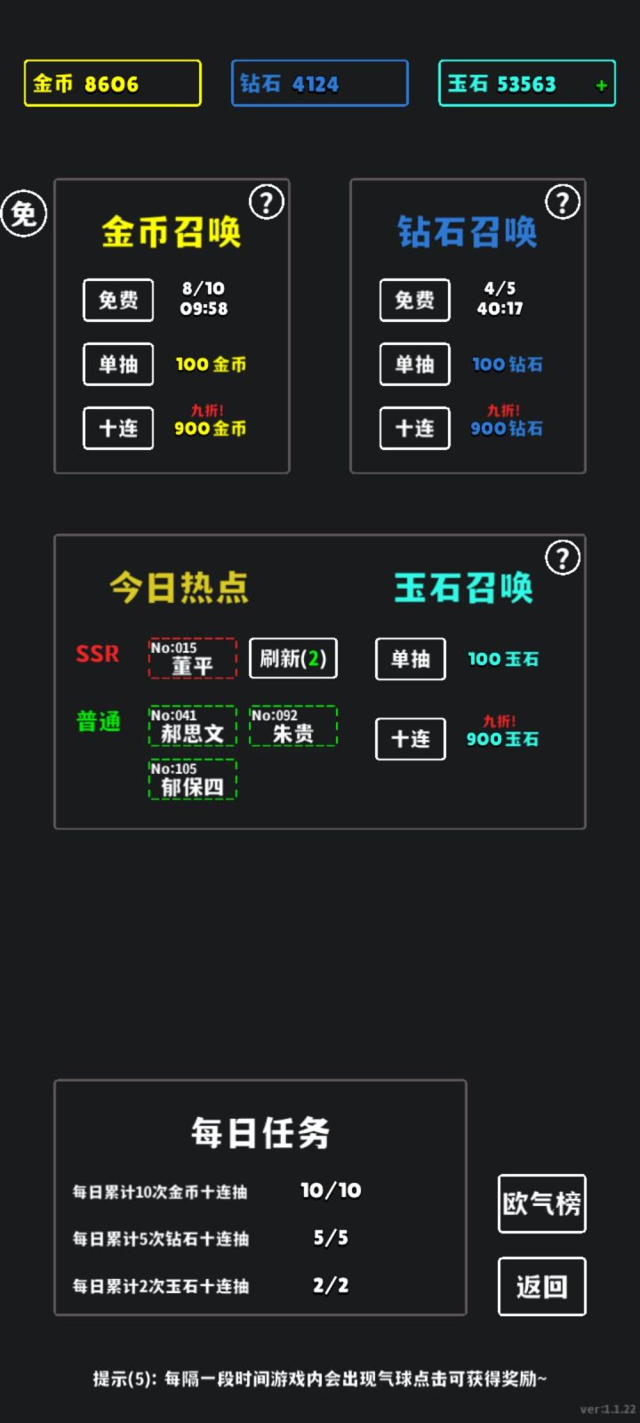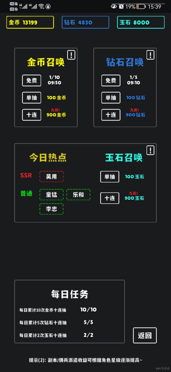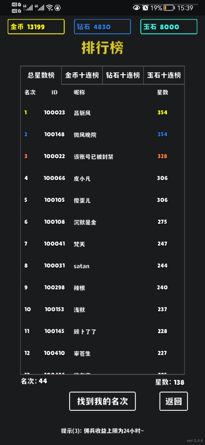 1,感觉各种资源获得稍微有点少啊,副本挂金币就不能挂钻石,只靠佣兵金币又不够用,粗粗算了一下,一个英雄14-21星升星要14w金币,108个就要1512w,一天5w,得300天才能到21星,如果去副本挂金币,钻石又少,抽不了钻石和玉石,英雄碎片和突破石又少,我现在副本全挂钻石,碎片有了,没金币和突破石给人卡这儿了。