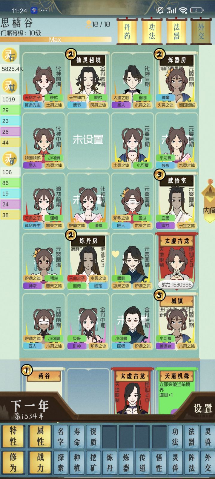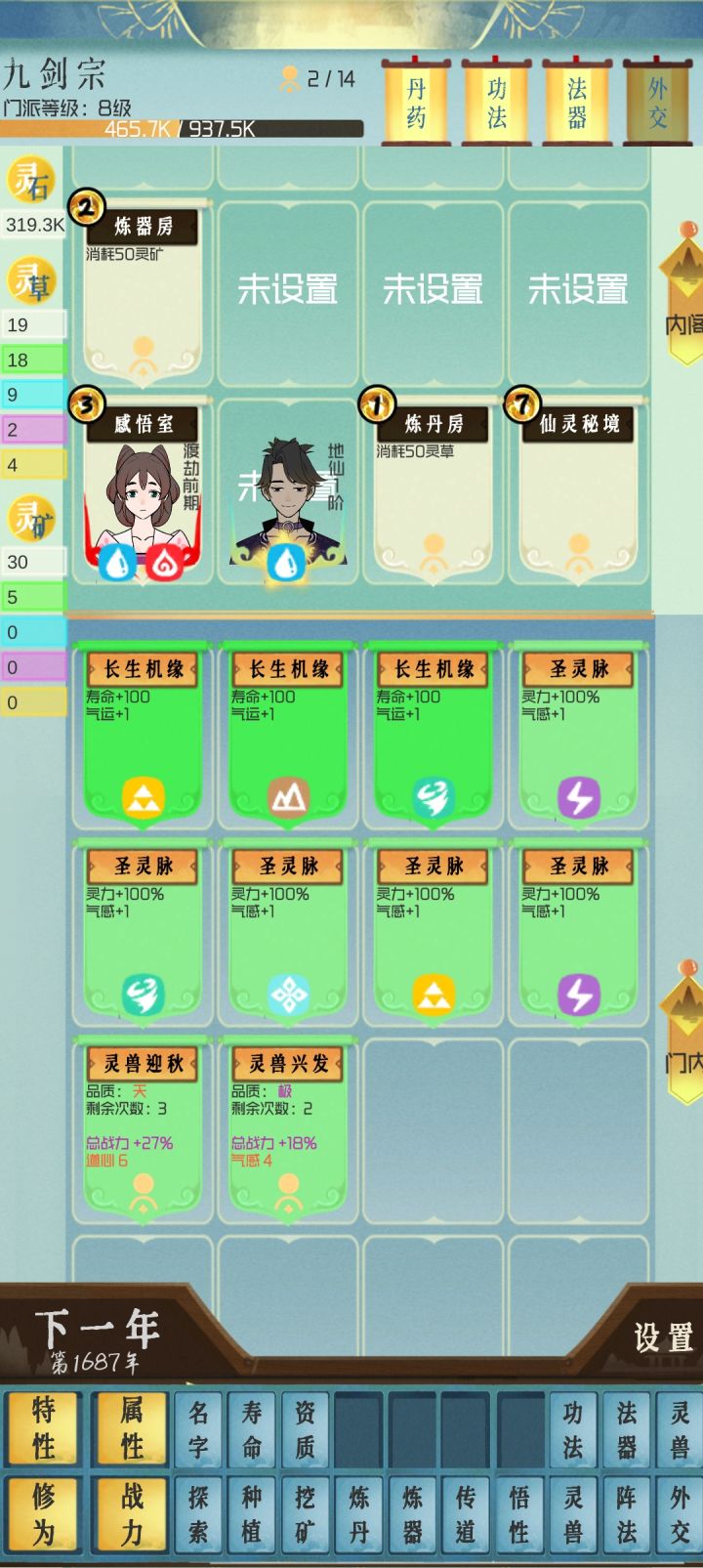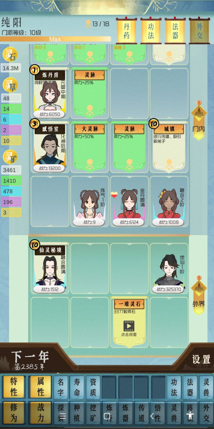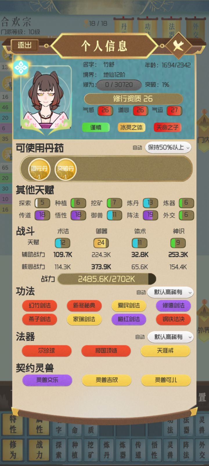 (有些框前期没开,需要在这个备份中把宗门升到十级,在下一个备份就开的差不多了。)