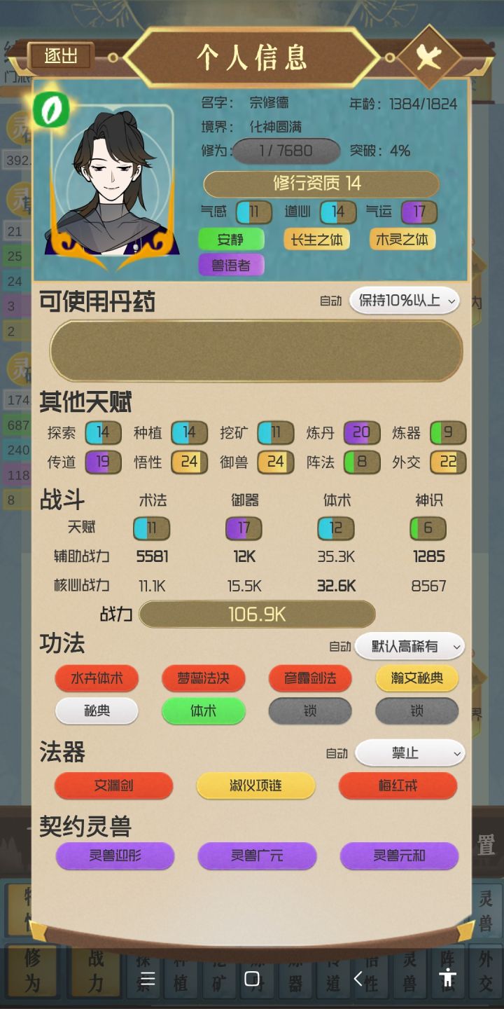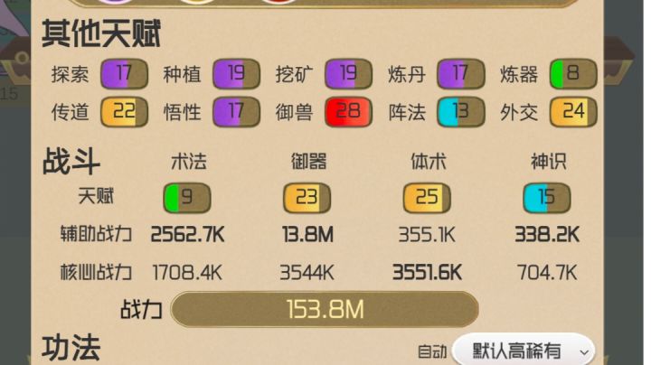 修行资质:比较重要,单人认为会影响后期长修为的快慢,一般会刷到14以上