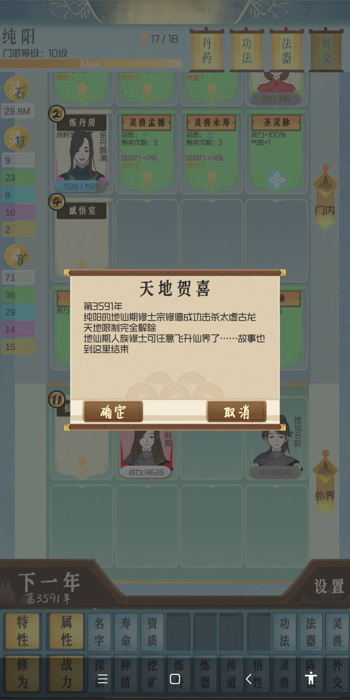 一切完成后,他们就会自己产出武器突破丹(前提是运气好他们数值也高),简直就和工厂流水线一样。